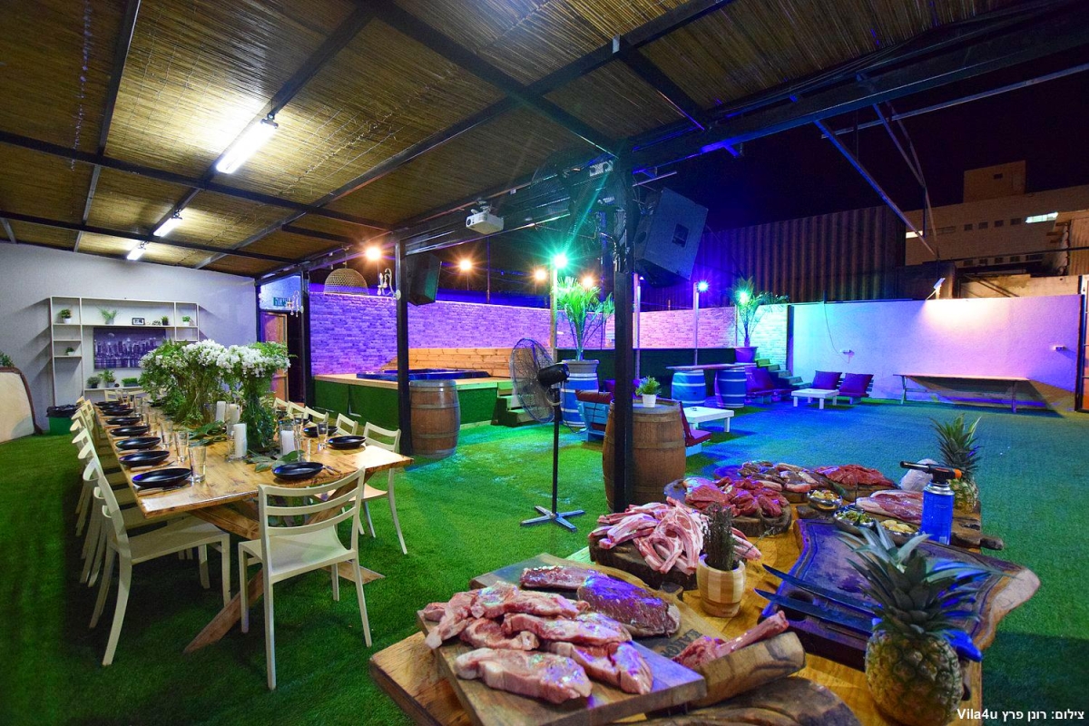מטבחון חיצוני מאובזר ב: מקרר, תנור אפייה, מיני בר, כיריים חשמליות