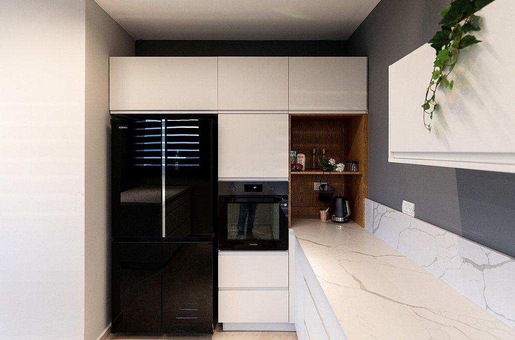 מטבח מאובזר - מקרר, תנור, כיריים גז, מיקרוגל, קומקום, כלי אוכל והגשה.