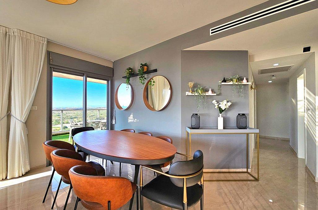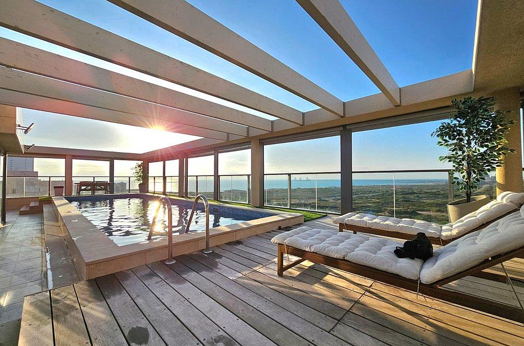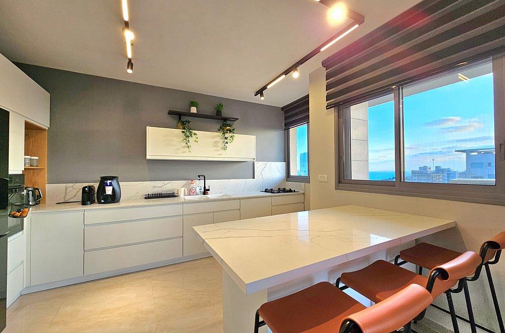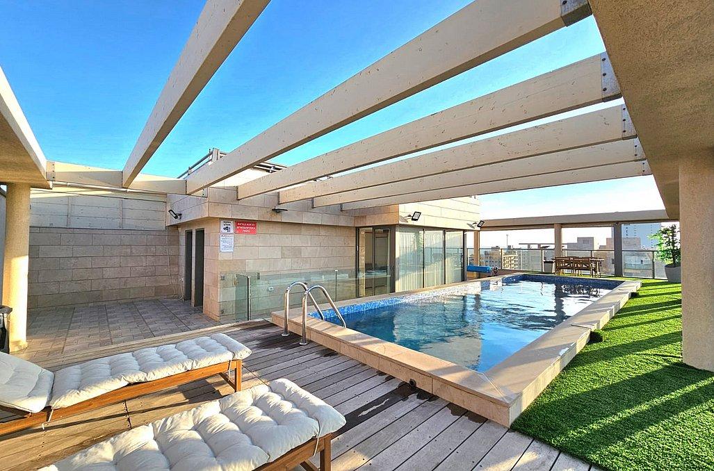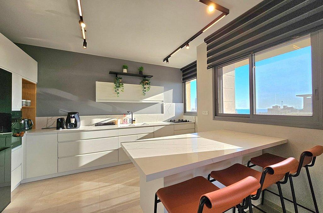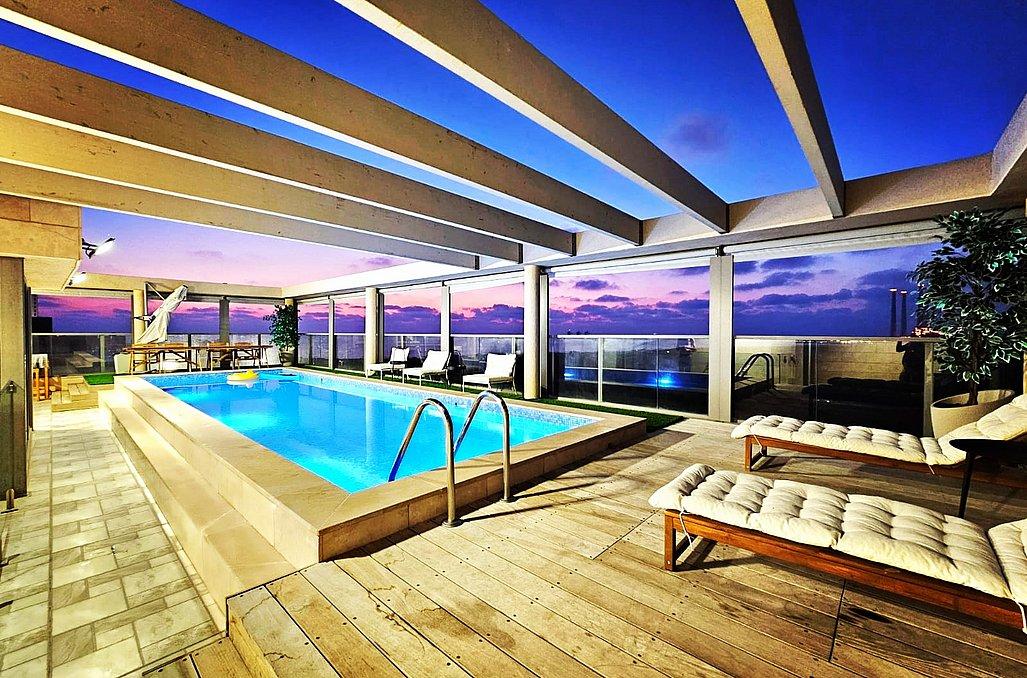 הפנטהאוז מאובזר בכל מה שצריך לחופשה מעולה ורגועה - מטבח, סלון מעוצב, 3 חדרי שינה מפנקים, מתחם חוץ עם עמדת מנגל, בריכת שחייה מחוממת ועוד.