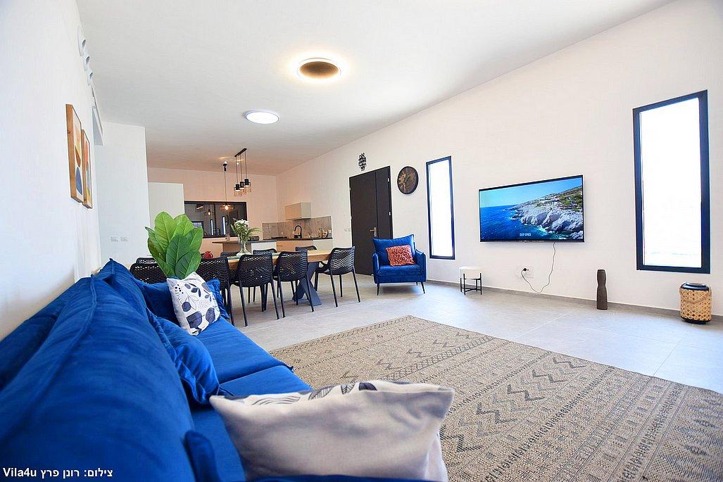 - סלון מרווח ונעים עם פינת ישיבה איכותית ומסך טלוויזיה