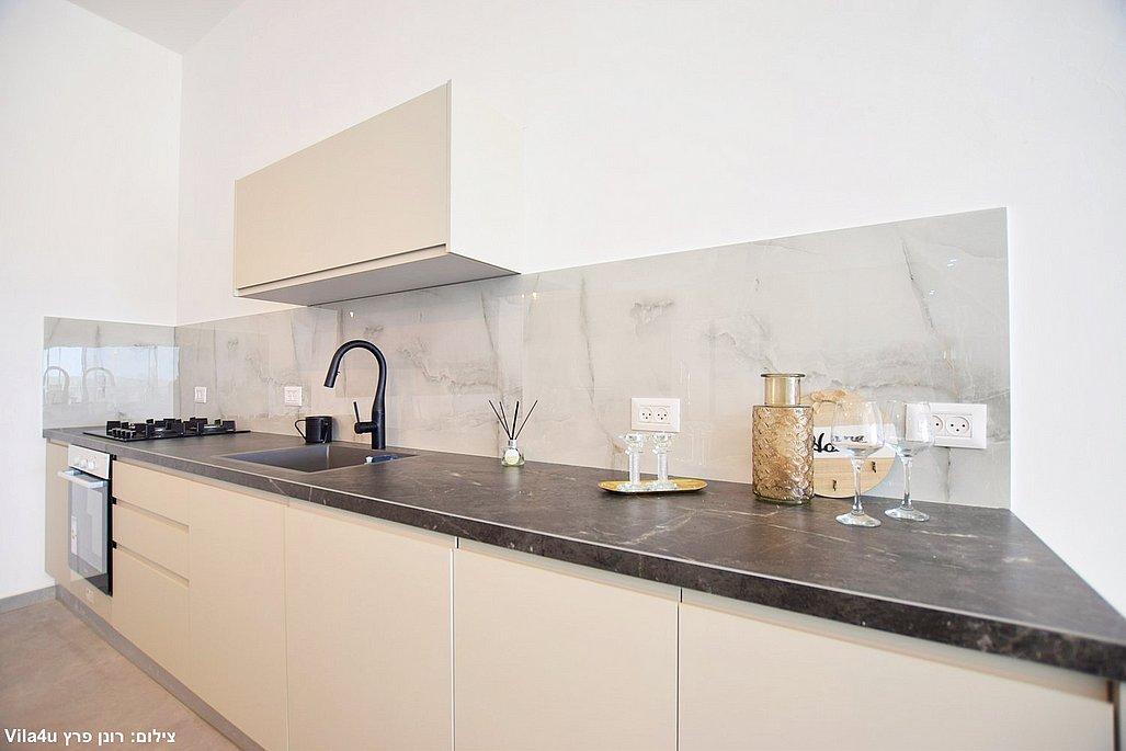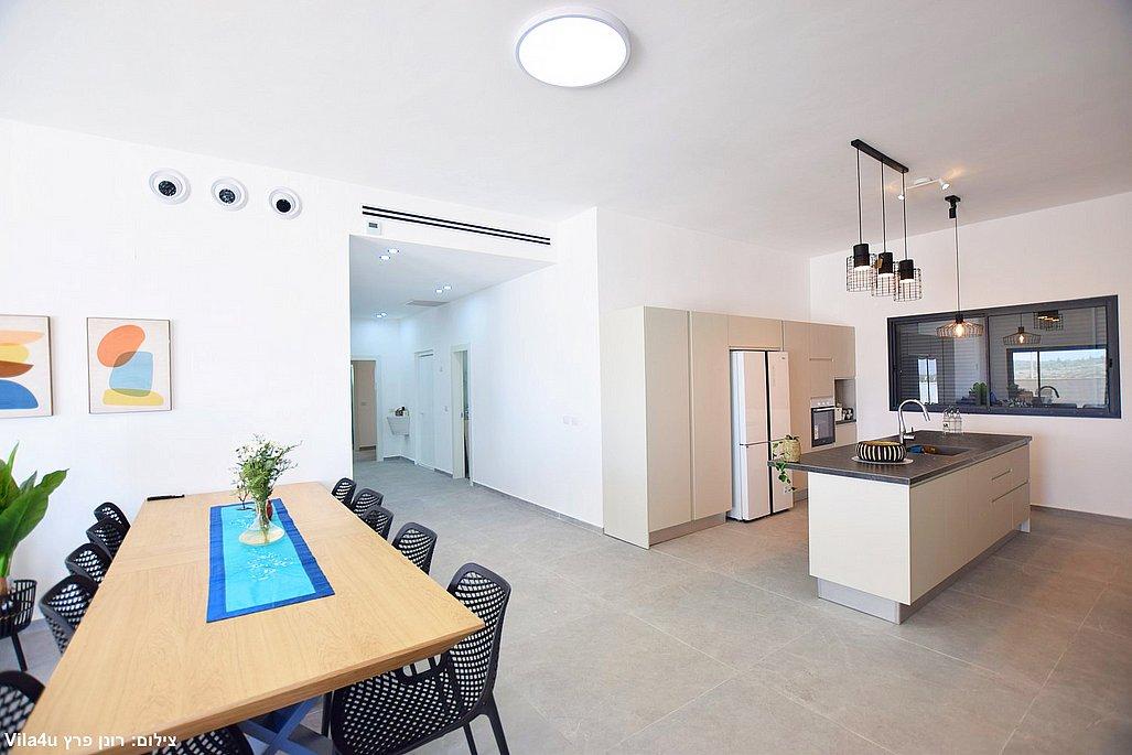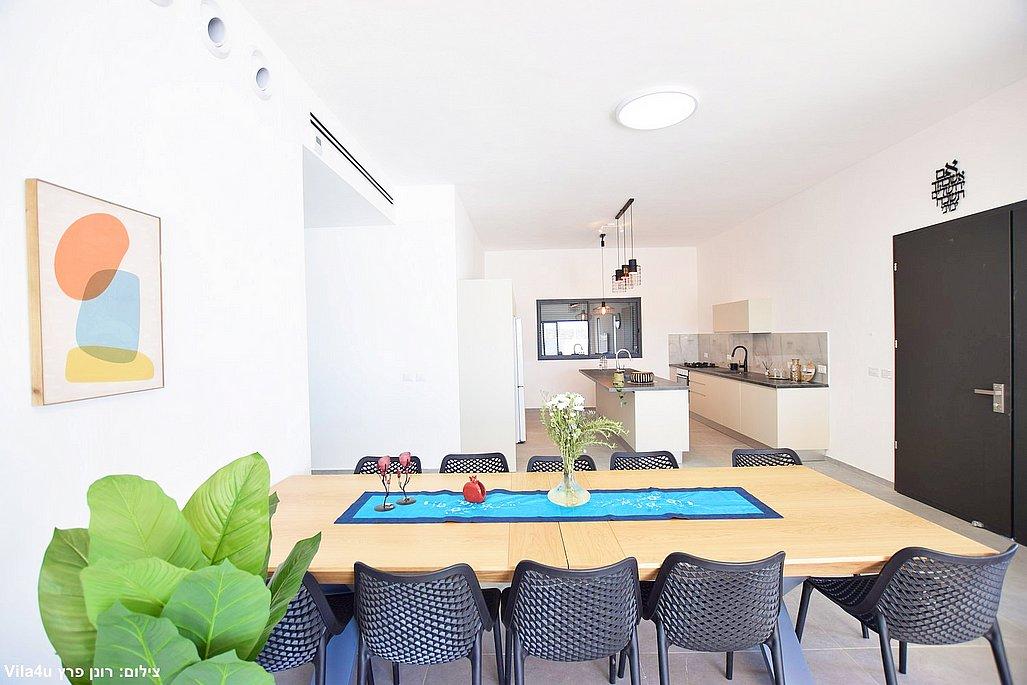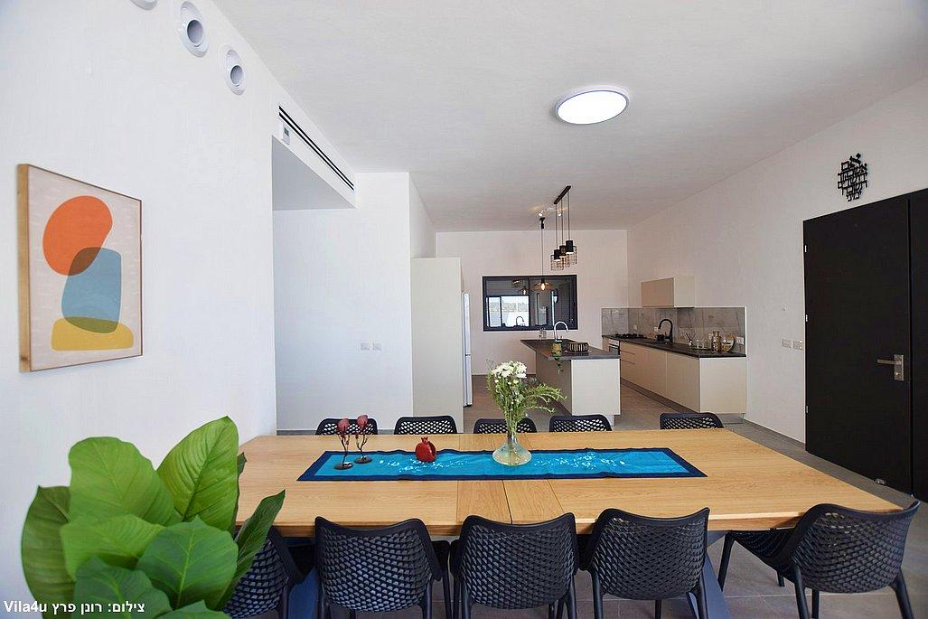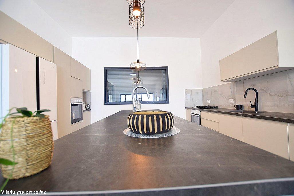 - מטבח מאובזר עם אי מרכזי – מקרר, מקפיא, 2 תנורים, כיריים גז, קומקום, פינת קפה, 2 כיורים נפרדים, כלי הגשה, סירים ועוד