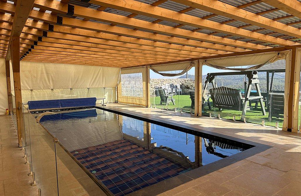 בריכה פרטית מגודרת מחוממת ומקורה (עומק עד 160 ס"מ)