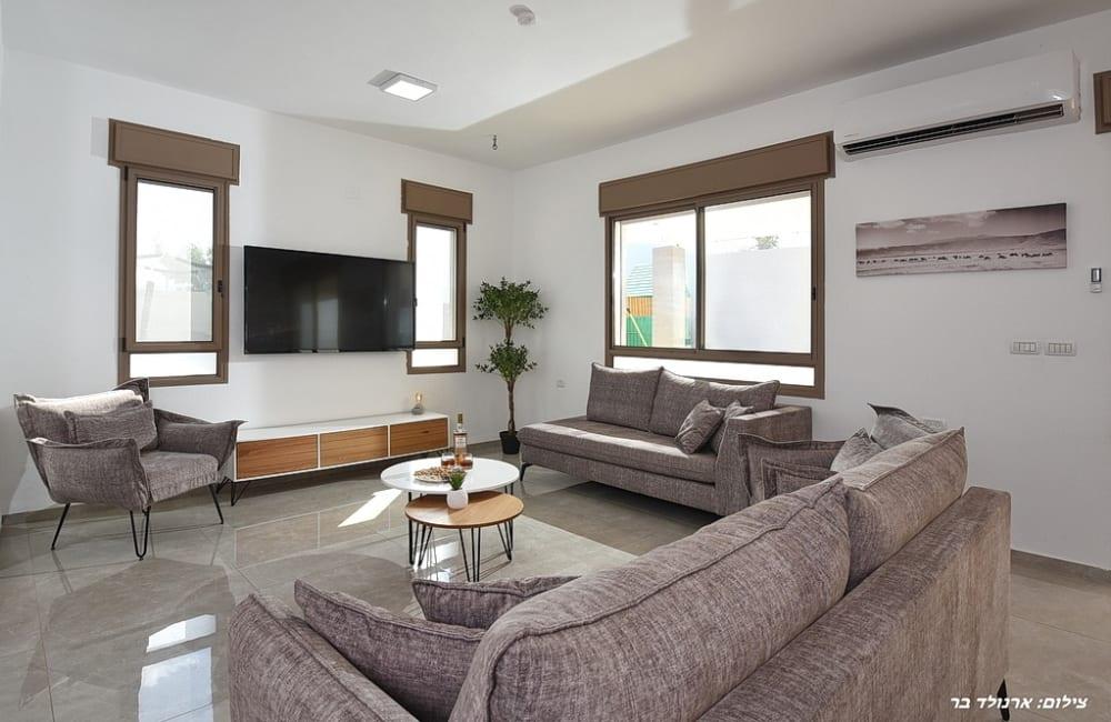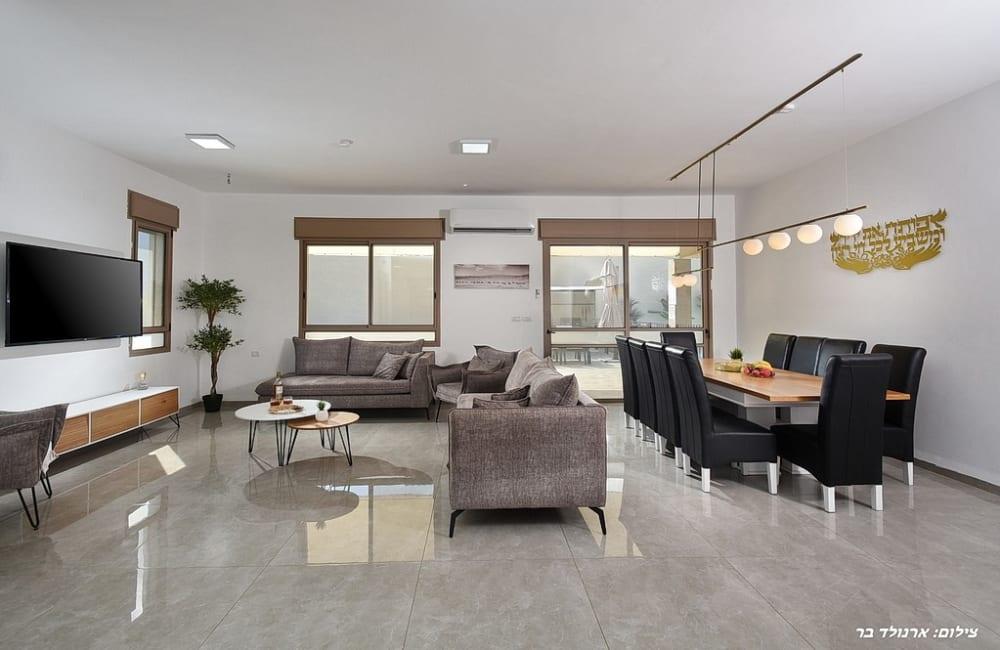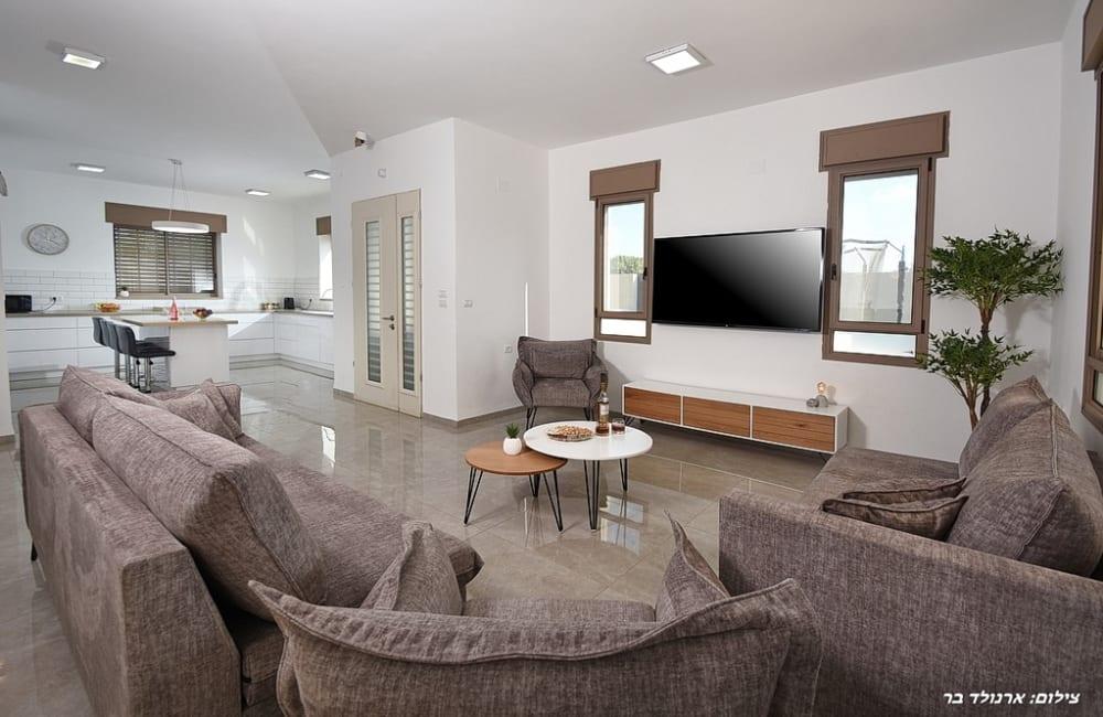 - סלון גדול עם מערכת ישיבה מפנקת וטלוויזיה 60 אינץ’ עם חיבור HOT