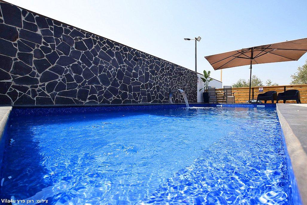 - בריכה בנויה גדולה עם מפל מים