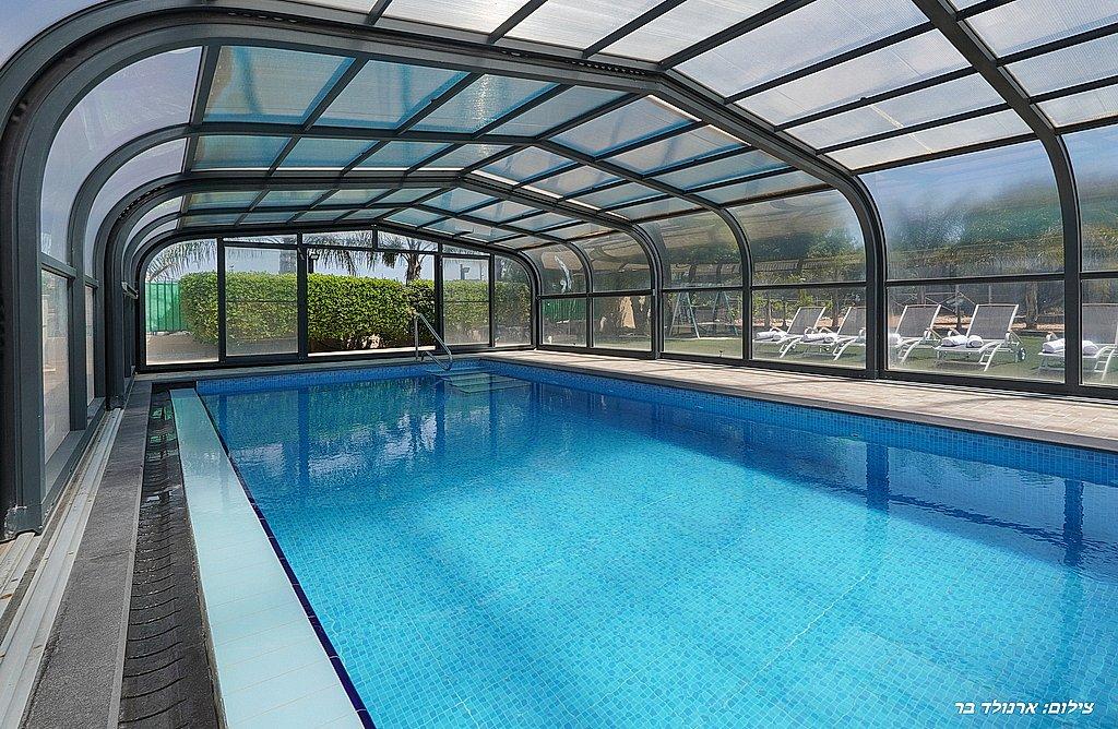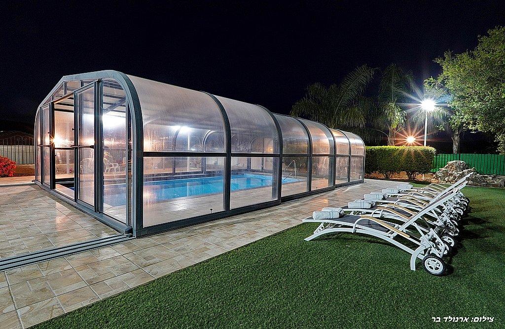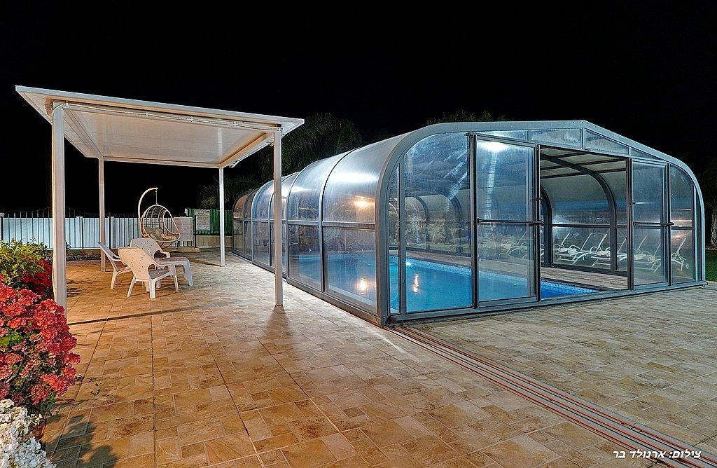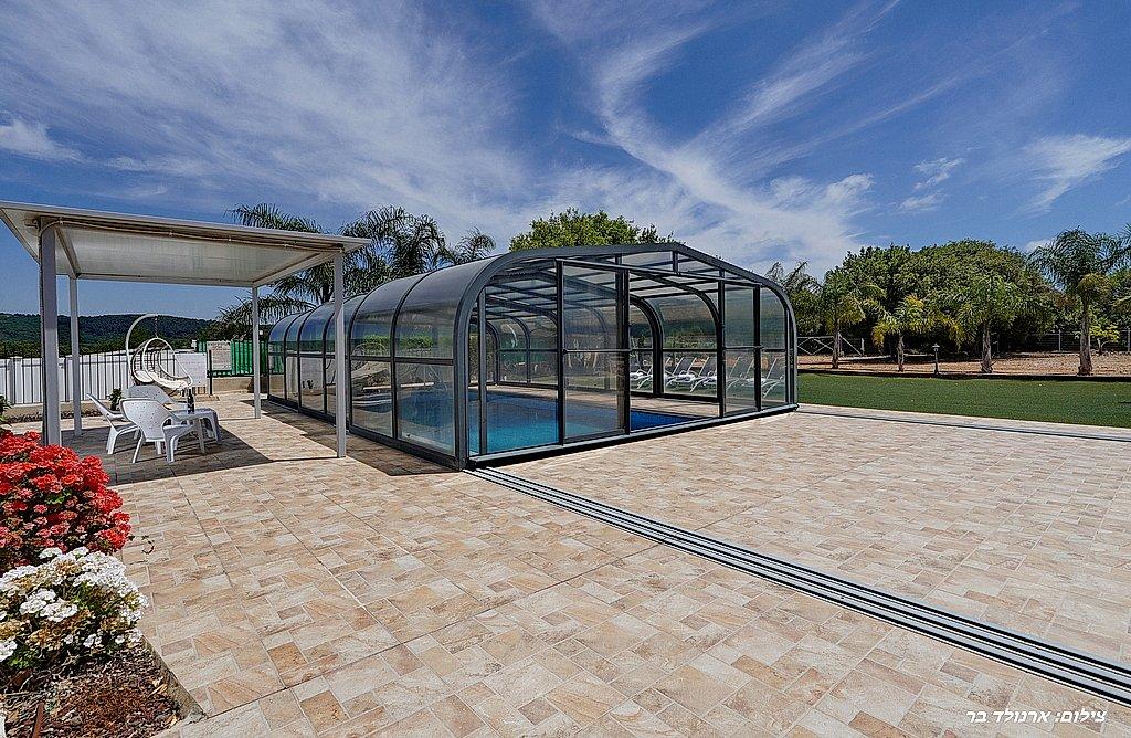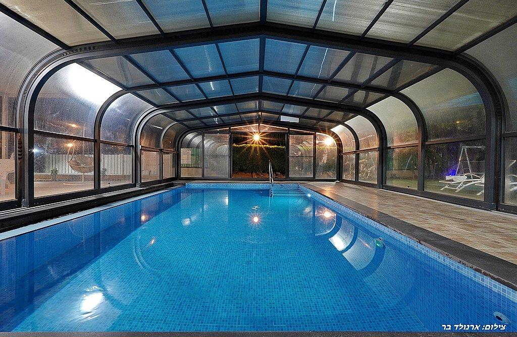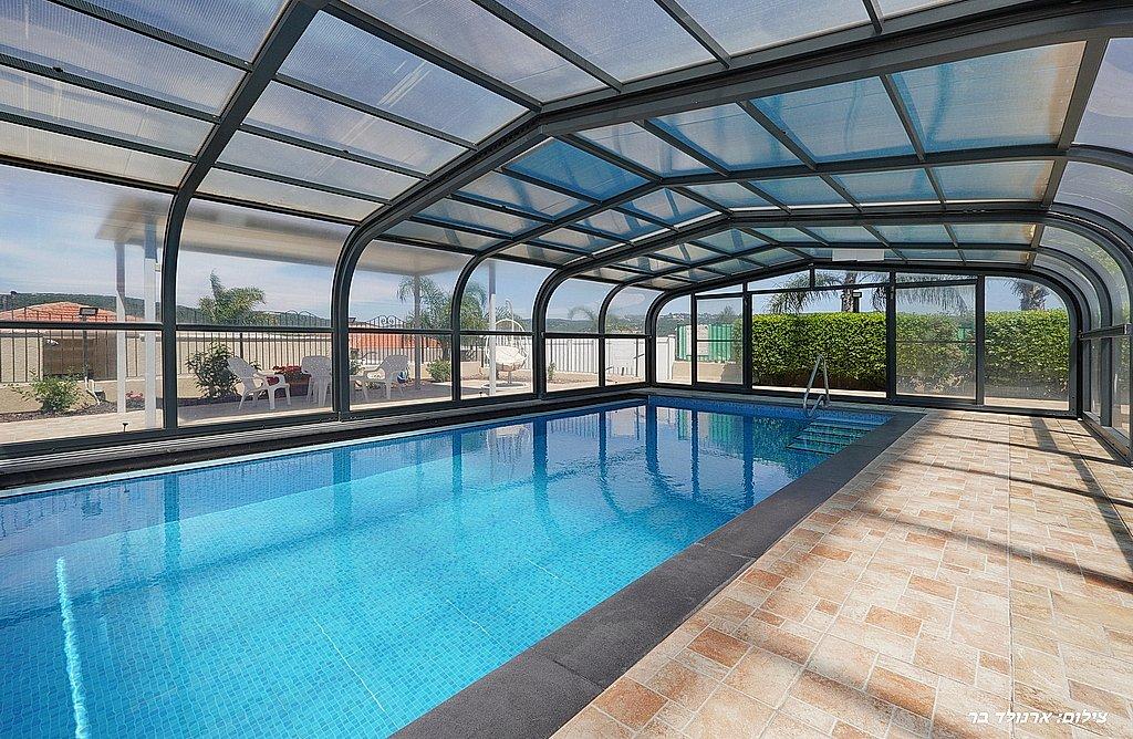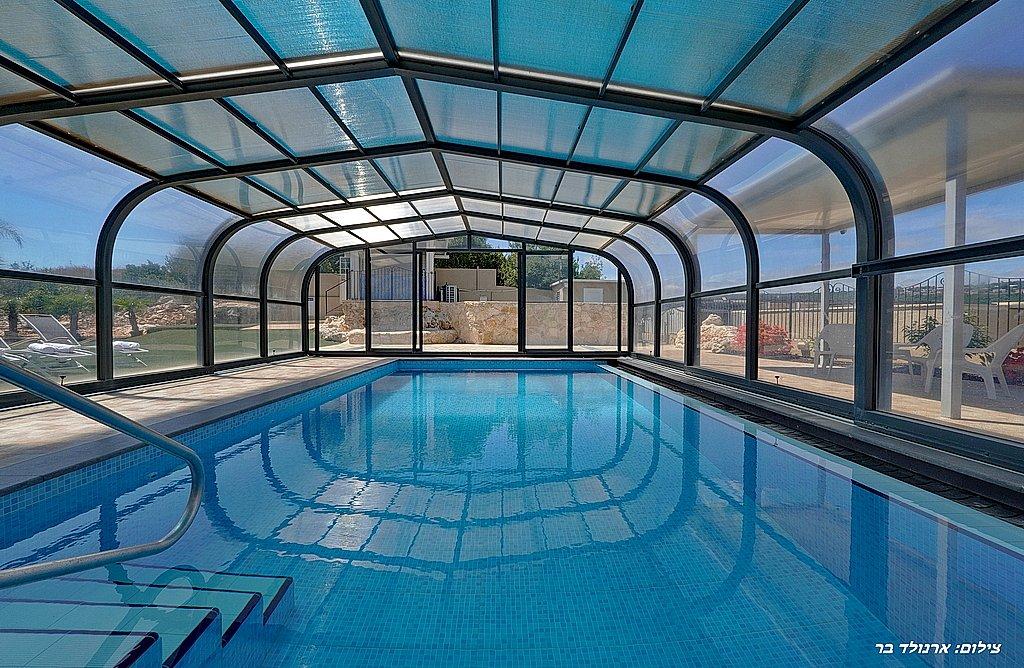 בריכה שחייה מחוממת, מקורה ובנויה בגודל 8 על 5 מול נוף מדהים ועוצר נשימה