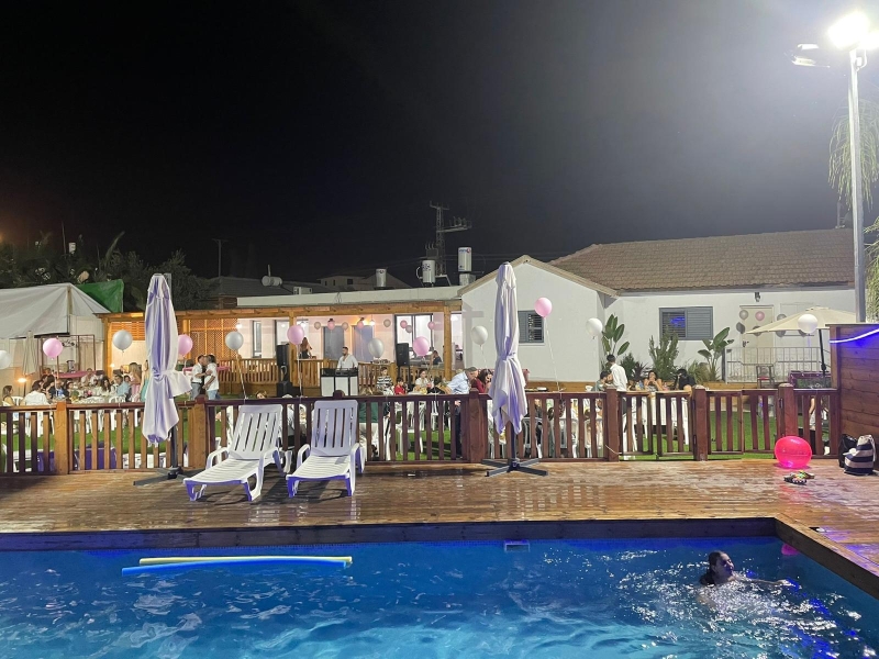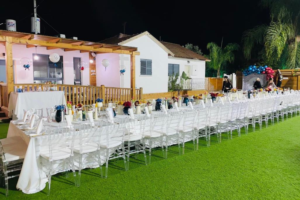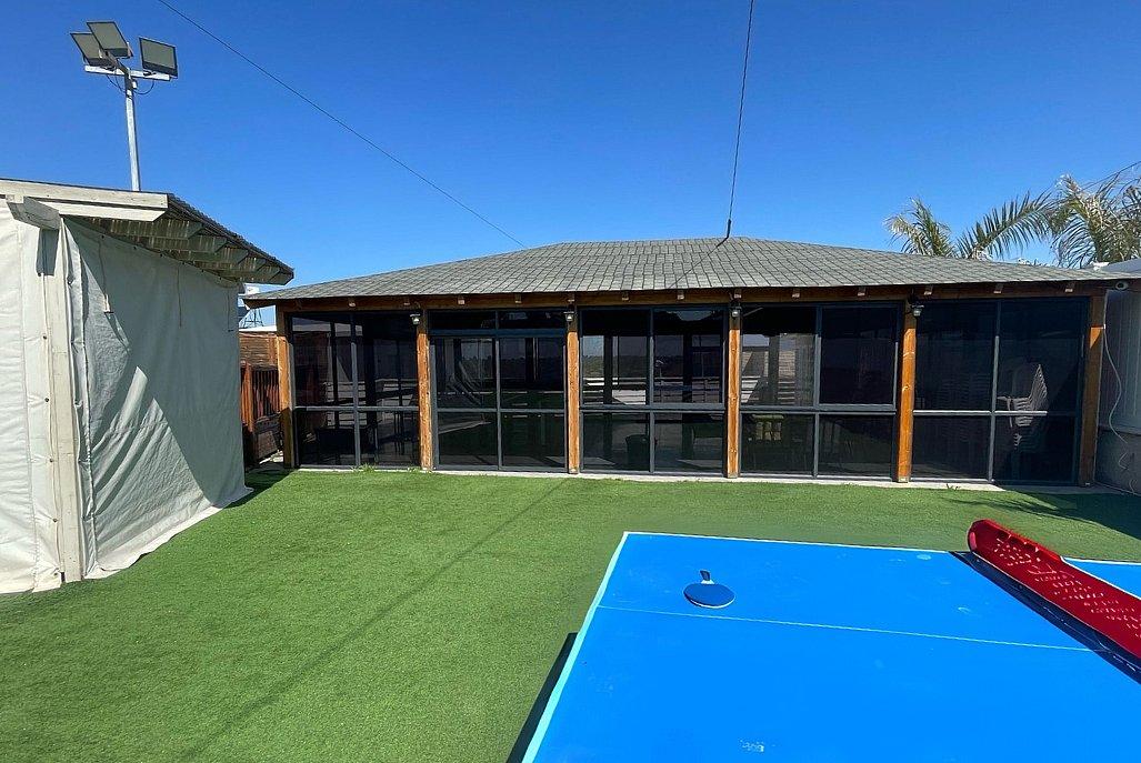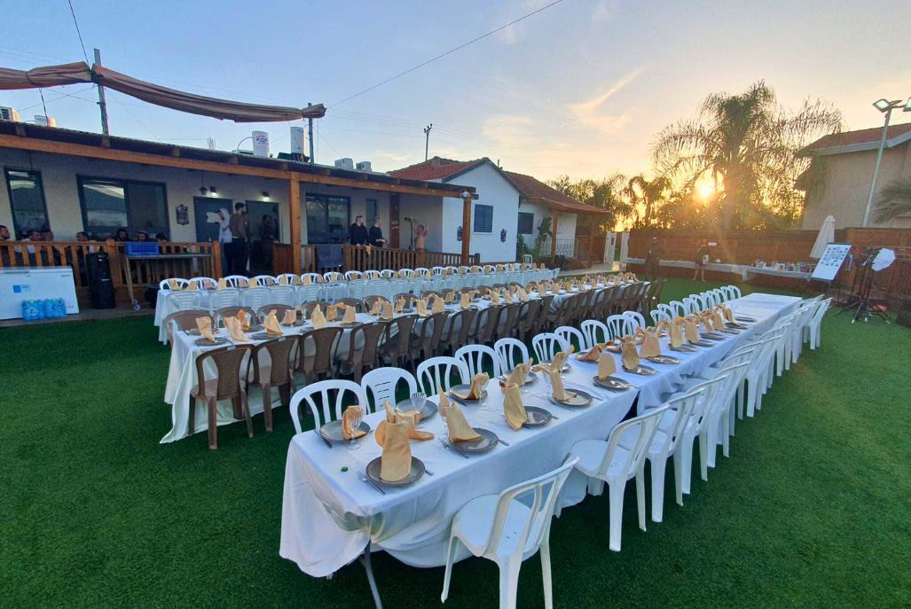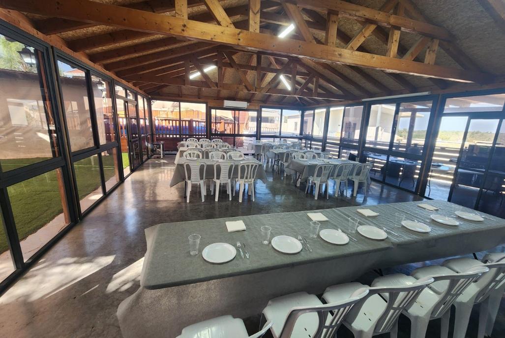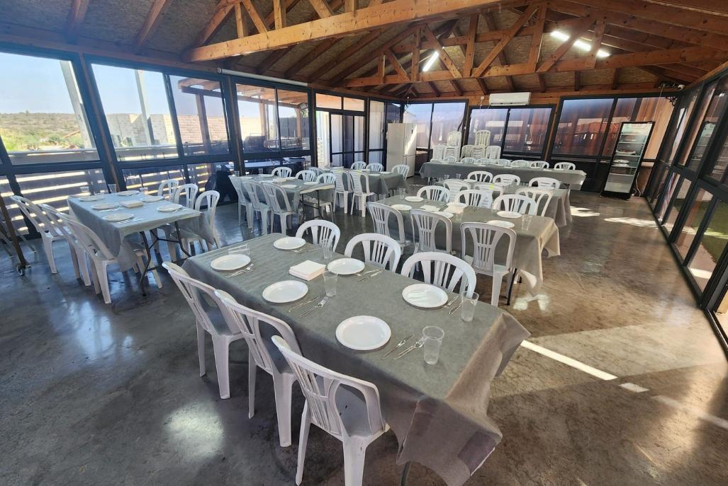חדר אוכל מקורה וממוזג עם ציוד מתאים (שולחנות, כיסאות) לארוחות משותפות ומגוון אירועים עד 100 אורחים