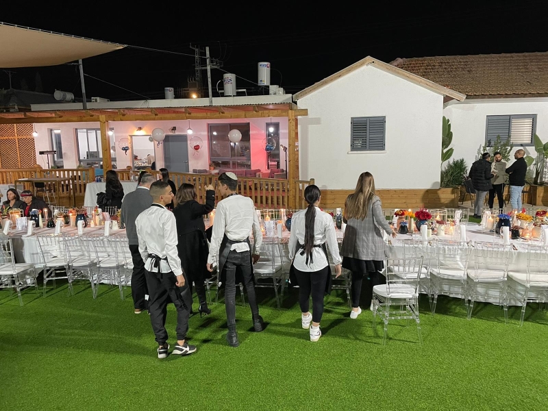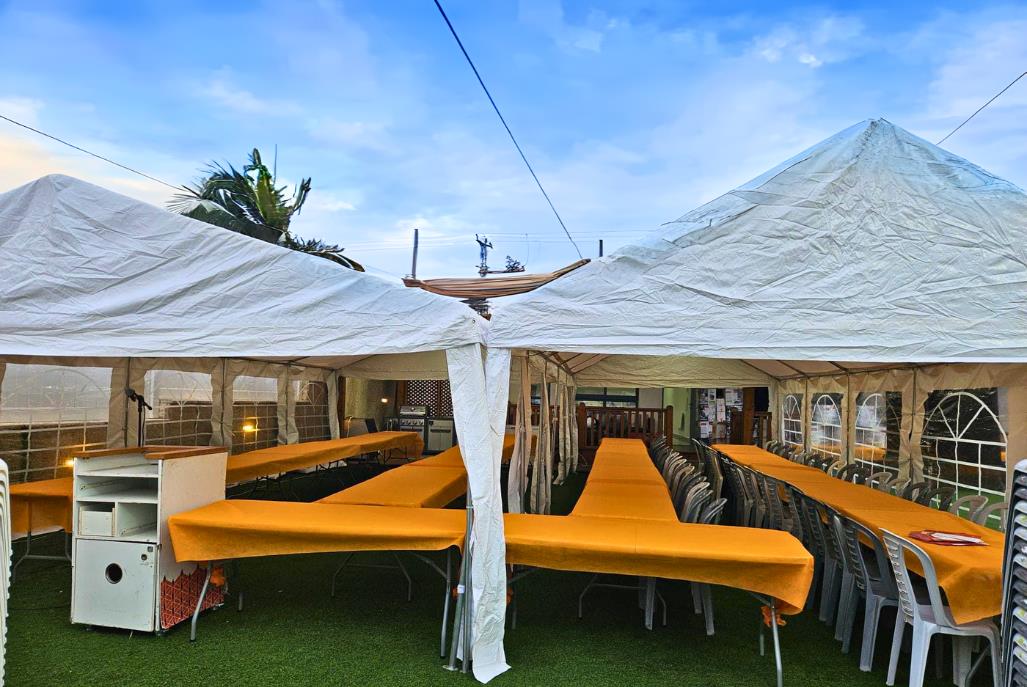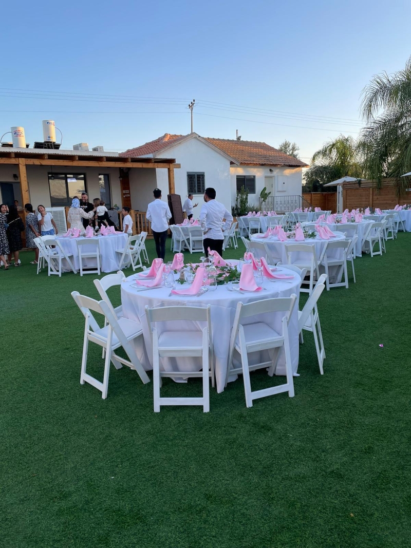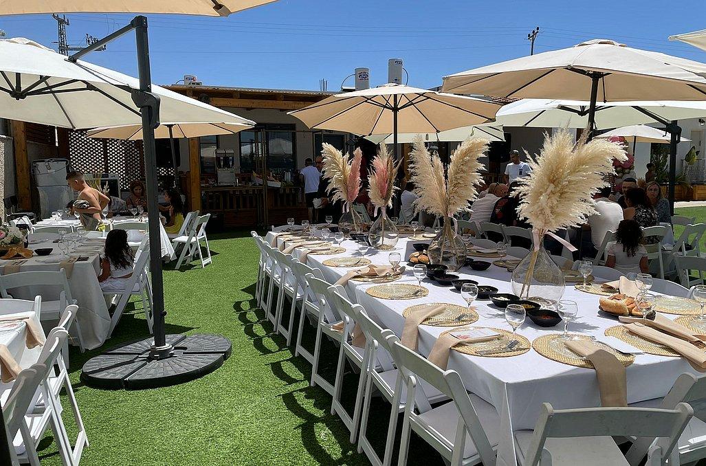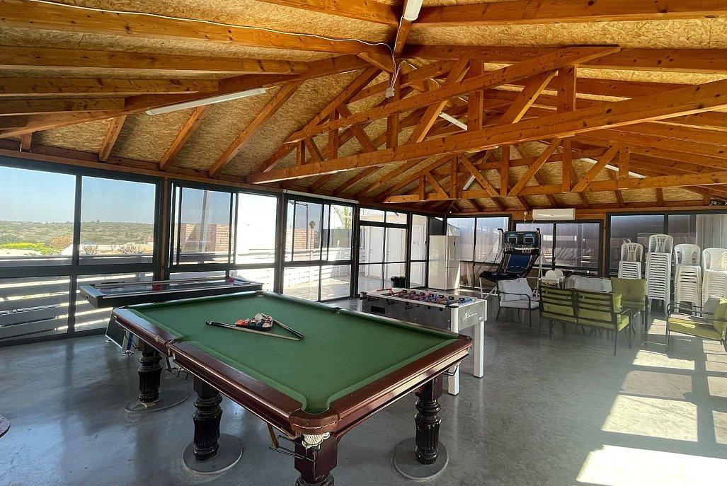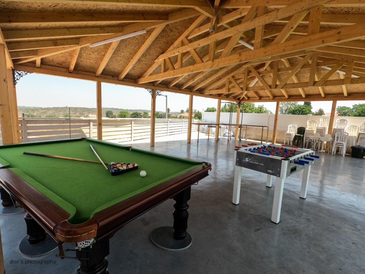 חדר אוכל מקורה וממוזג עם ציוד מתאים (שולחנות, כיסאות) לארוחות משותפות ומגוון אירועים עד 100 אורחים