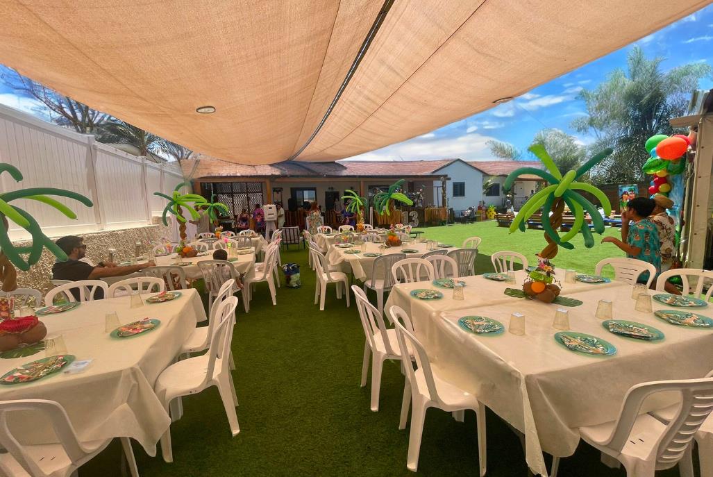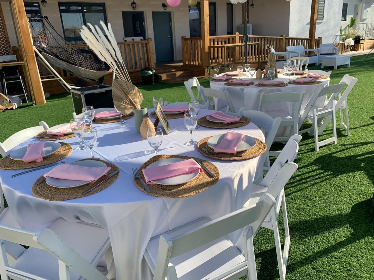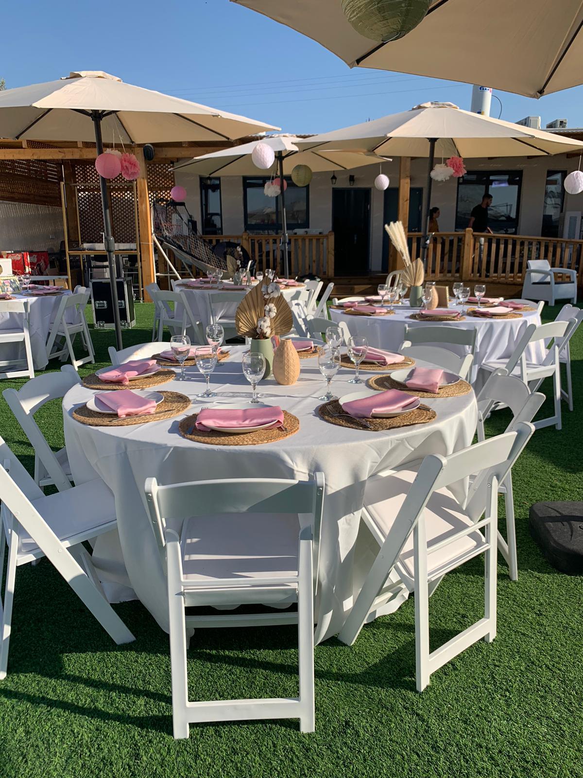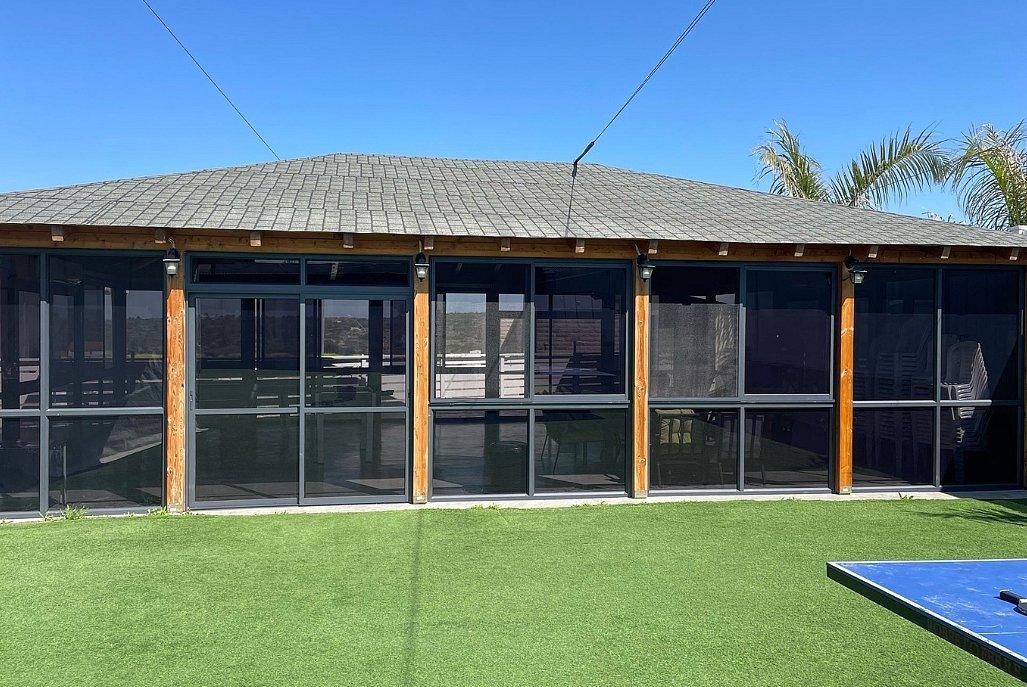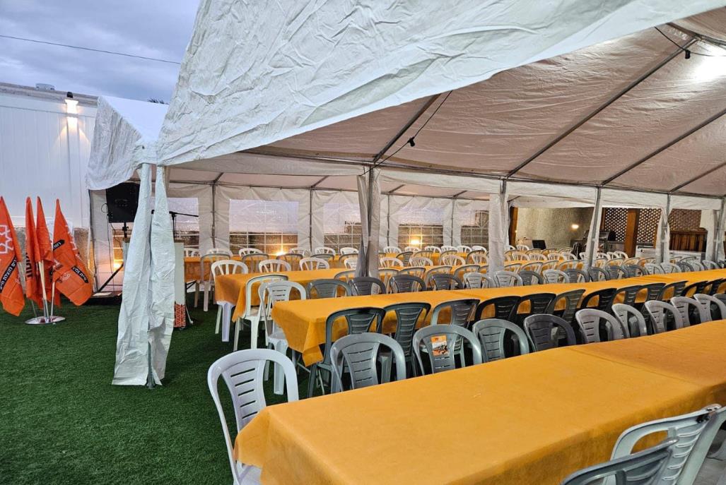 חדר אוכל מקורה וממוזג עם ציוד מתאים (שולחנות, כיסאות) לארוחות משותפות ומגוון אירועים עד 100 אורחים