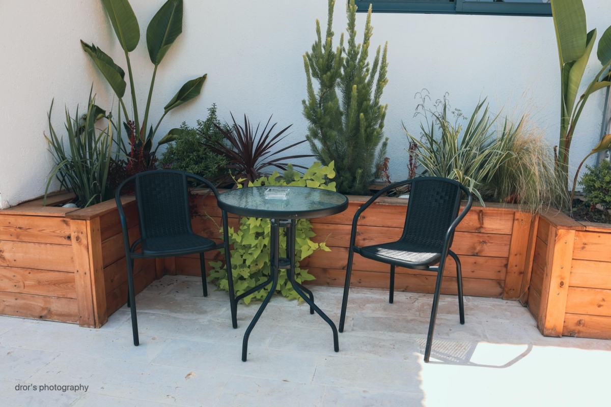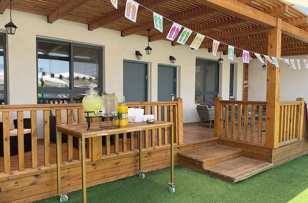 בנוסף ליחידות אלה מרפסת דק עם פרגולה להצללה ופינות ישיבה.