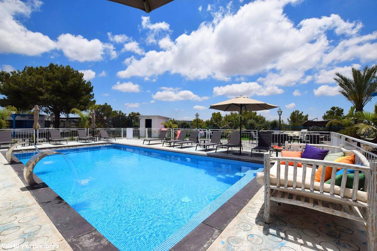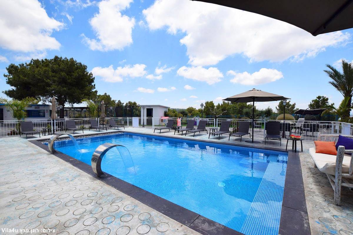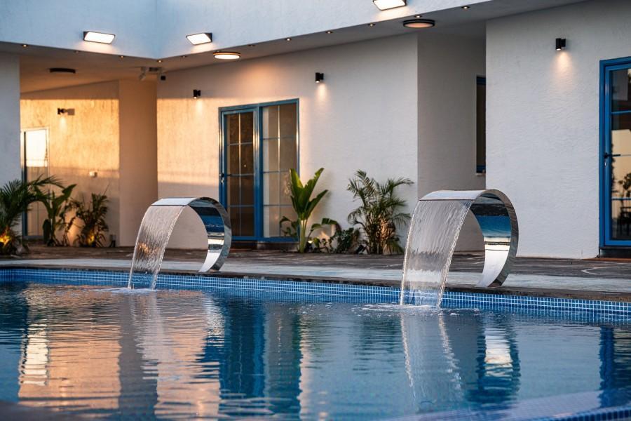 בריכה מגודרת (מחוממת ומקורה בחורף) עם 2 מפלים