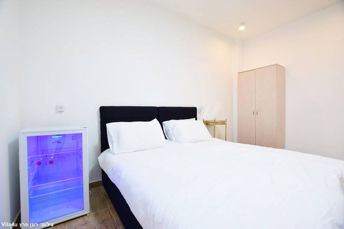 חדר שינה 1 - מיטה יהודית, ארון לאחסון, שידה, מסך טלוויזיה בחיבור לYES, מיני מקרר, מתלה בגדים, חדר רחצה פרטי.