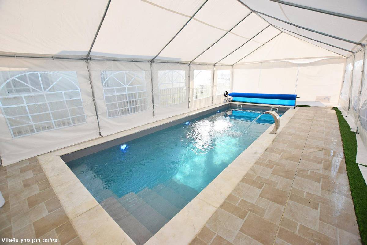 - בריכת שחיה מחוממת ומקורה עם מפל מים מרהיב