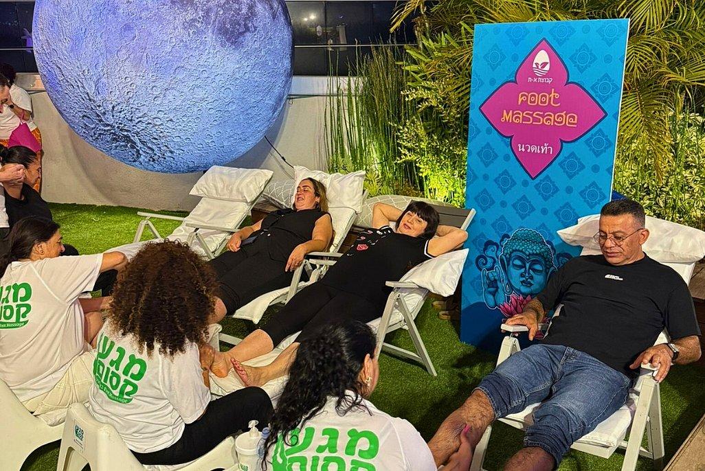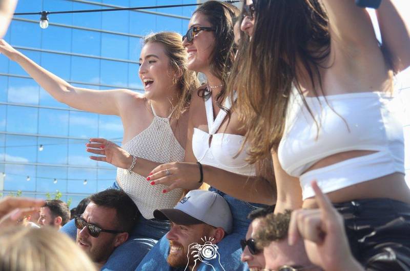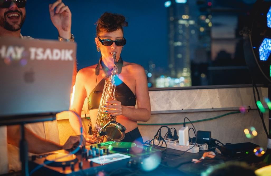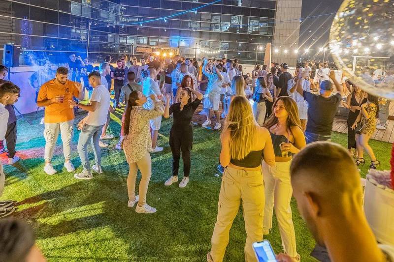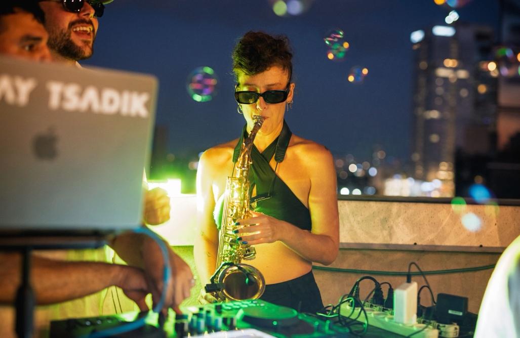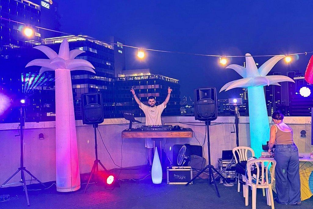 במקום עמדת תקליטן, דשא סינטטי על כל הגג, שירותים, עמדת בר בועטת, עמדת אוכל ובופה לעיני כל הקהל.