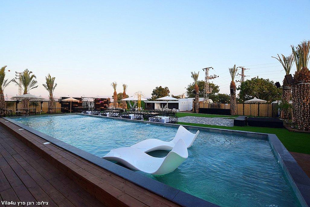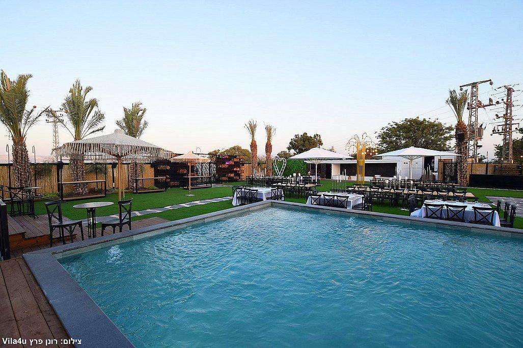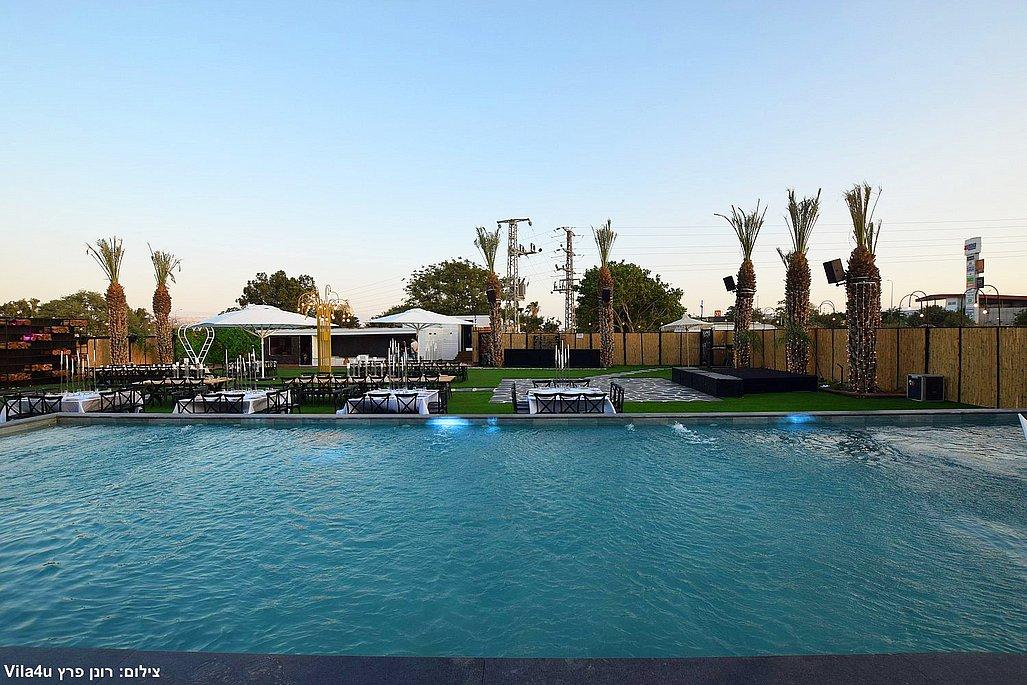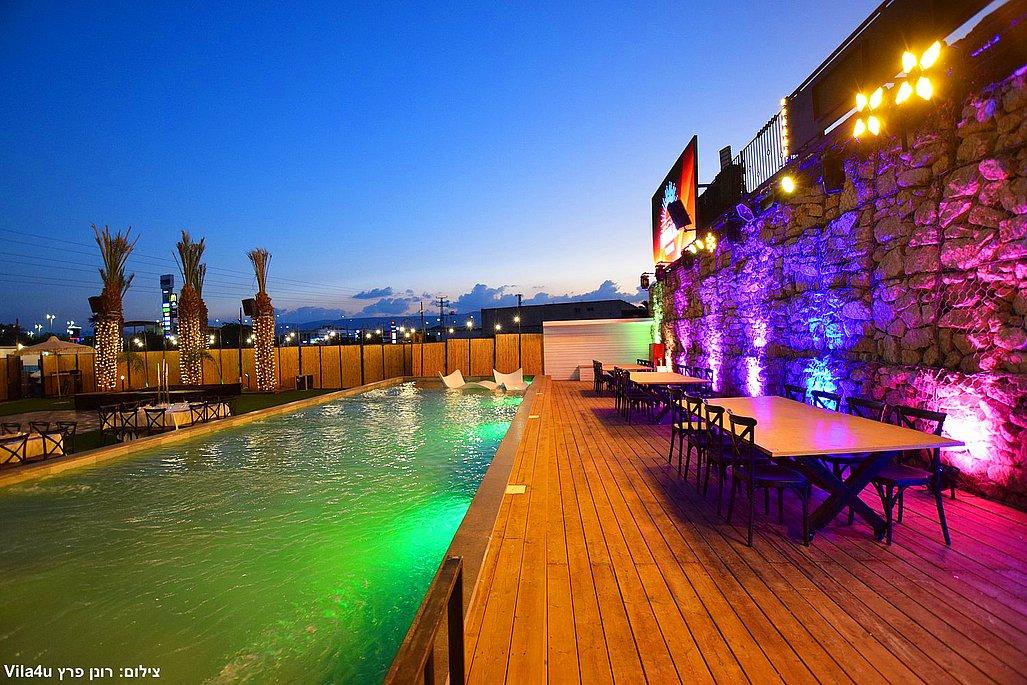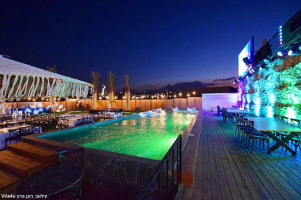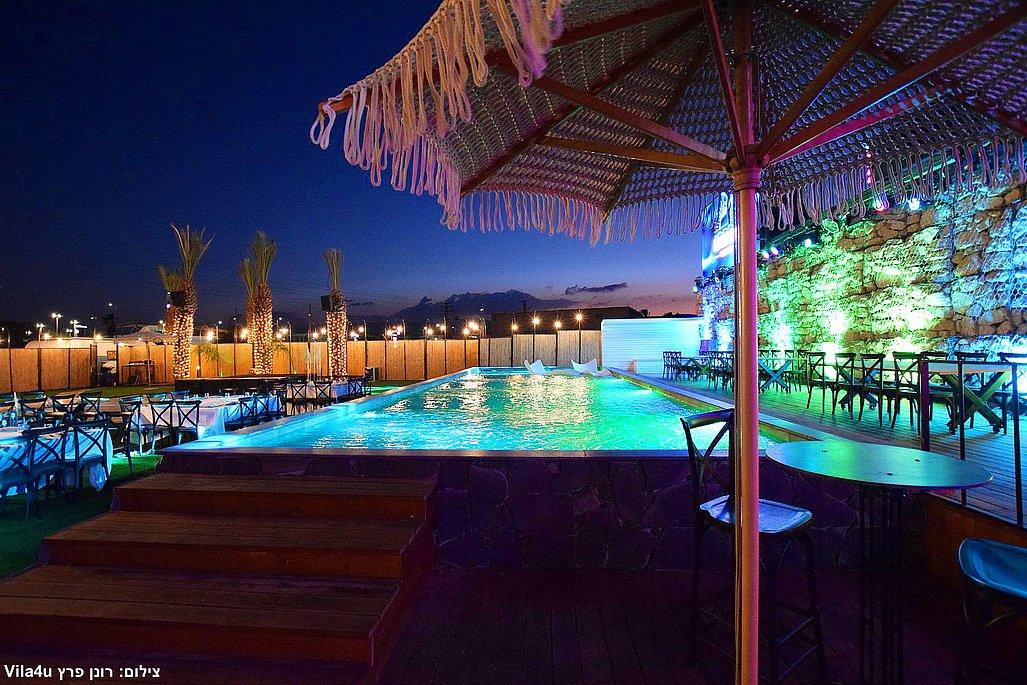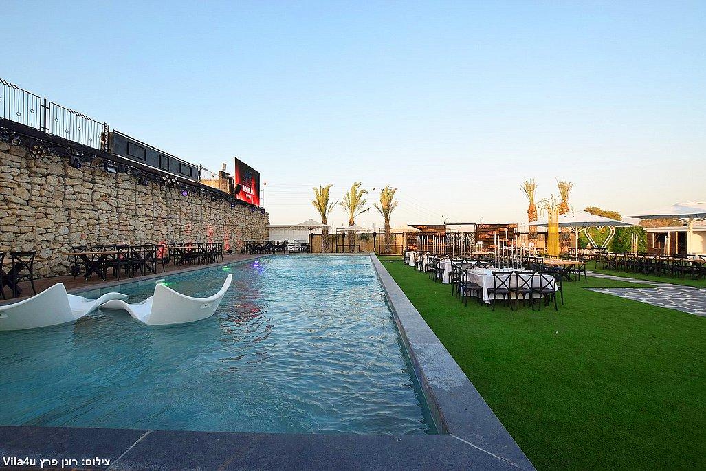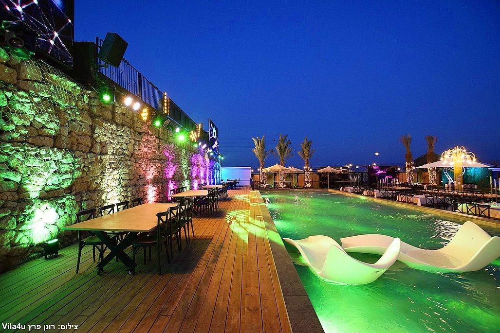 במתחם תיהנו מבריכת שחייה ענקית בגודל 5×15 מטר, מסכי ענק מרשימים, עמדת DJ מקצועית עם במה, פינות ישיבה מעוצבות, מטבח חוץ מאובזר, בר חיצוני מפואר ופינת סלפי מדליקה שתשאיר מזכרות נוצצות מהאירוע.