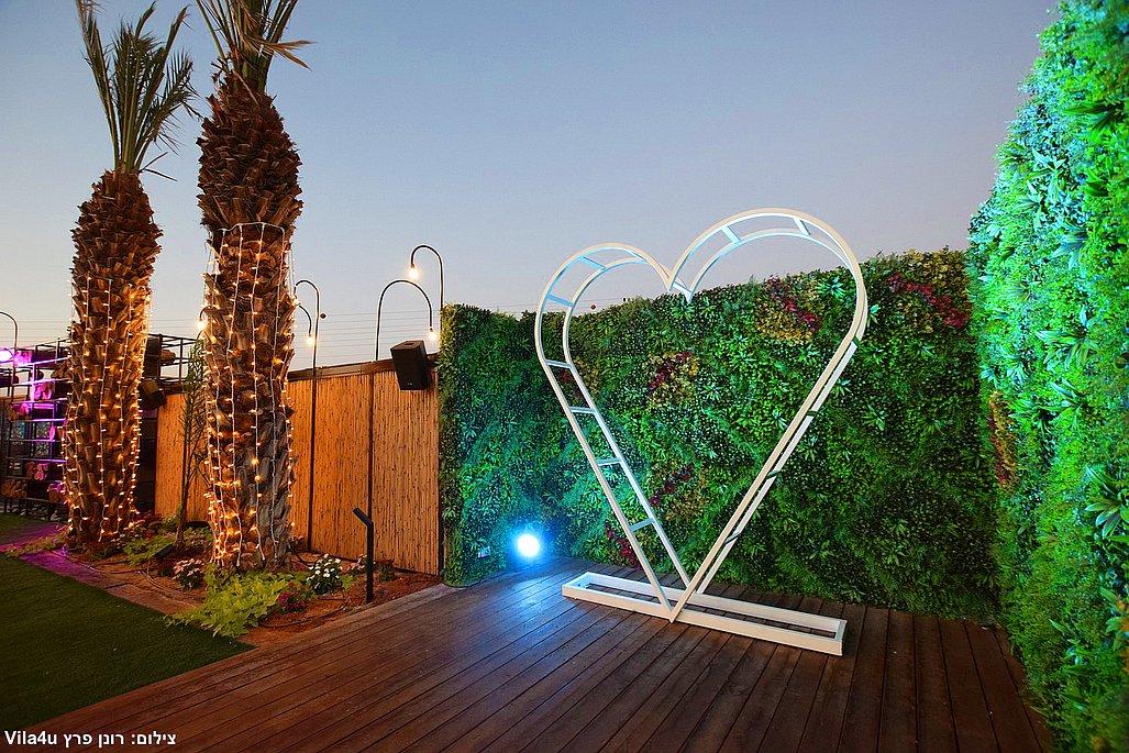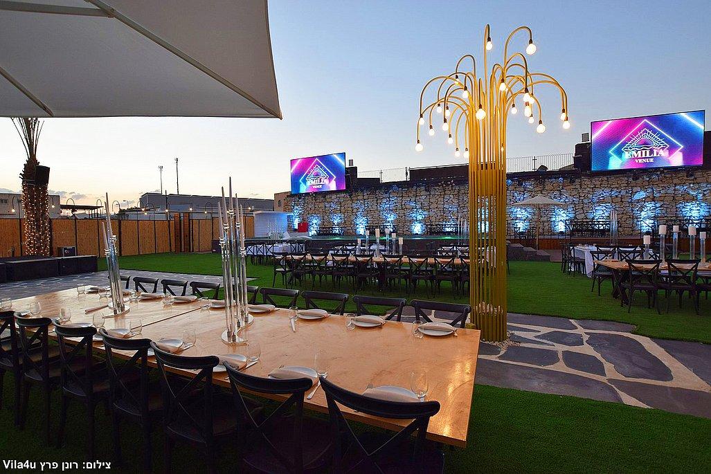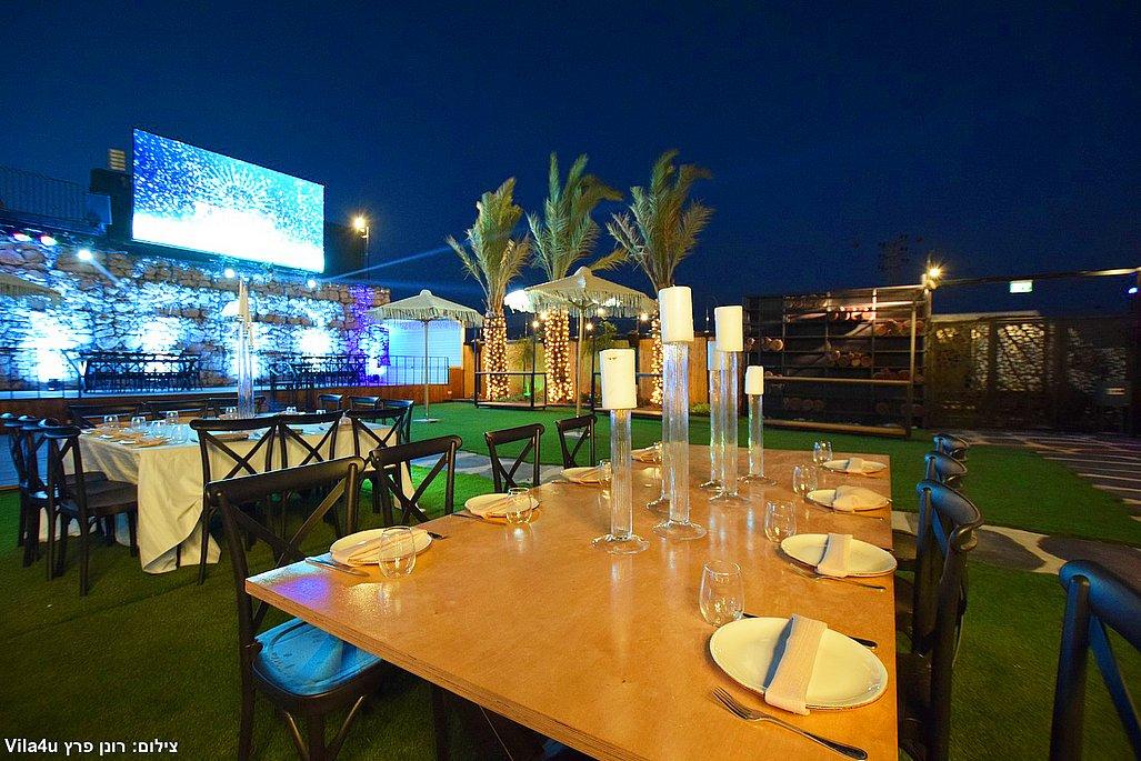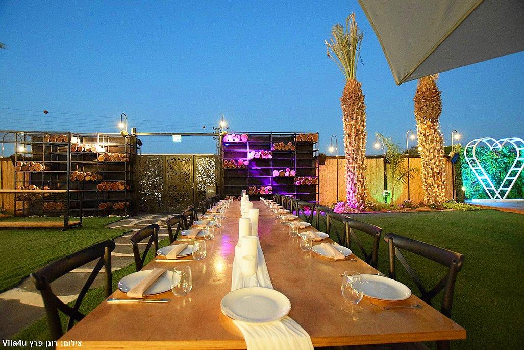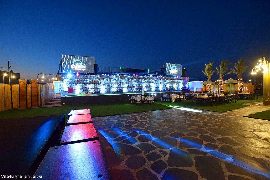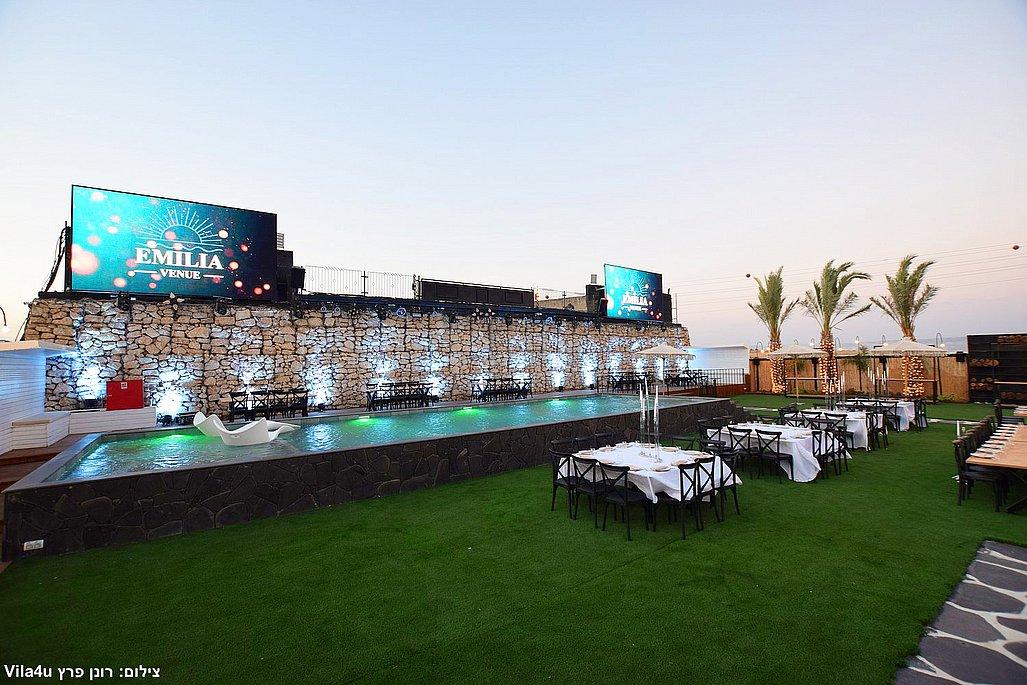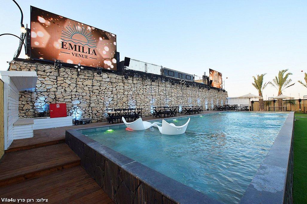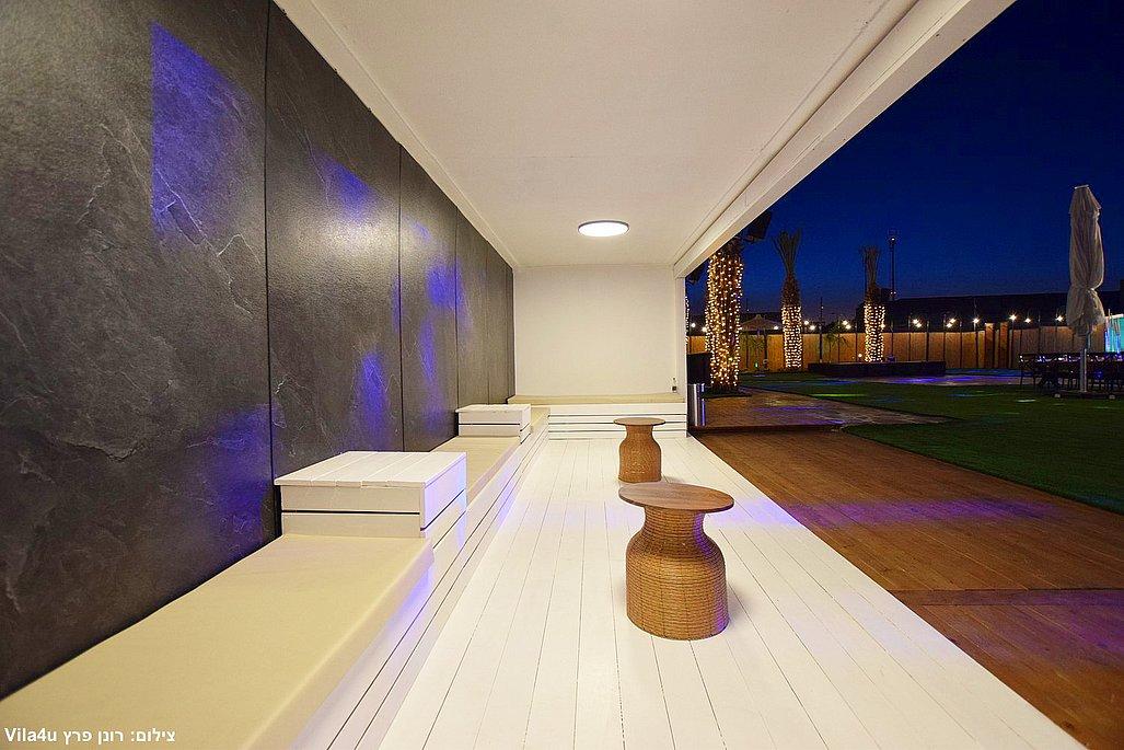 במתחם תיהנו מבריכת שחייה ענקית בגודל 5×15 מטר, מסכי ענק מרשימים, עמדת DJ מקצועית עם במה, פינות ישיבה מעוצבות, מטבח חוץ מאובזר, בר חיצוני מפואר ופינת סלפי מדליקה שתשאיר מזכרות נוצצות מהאירוע.