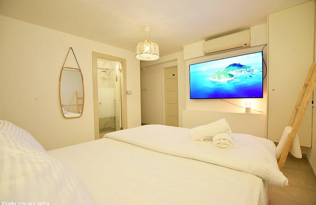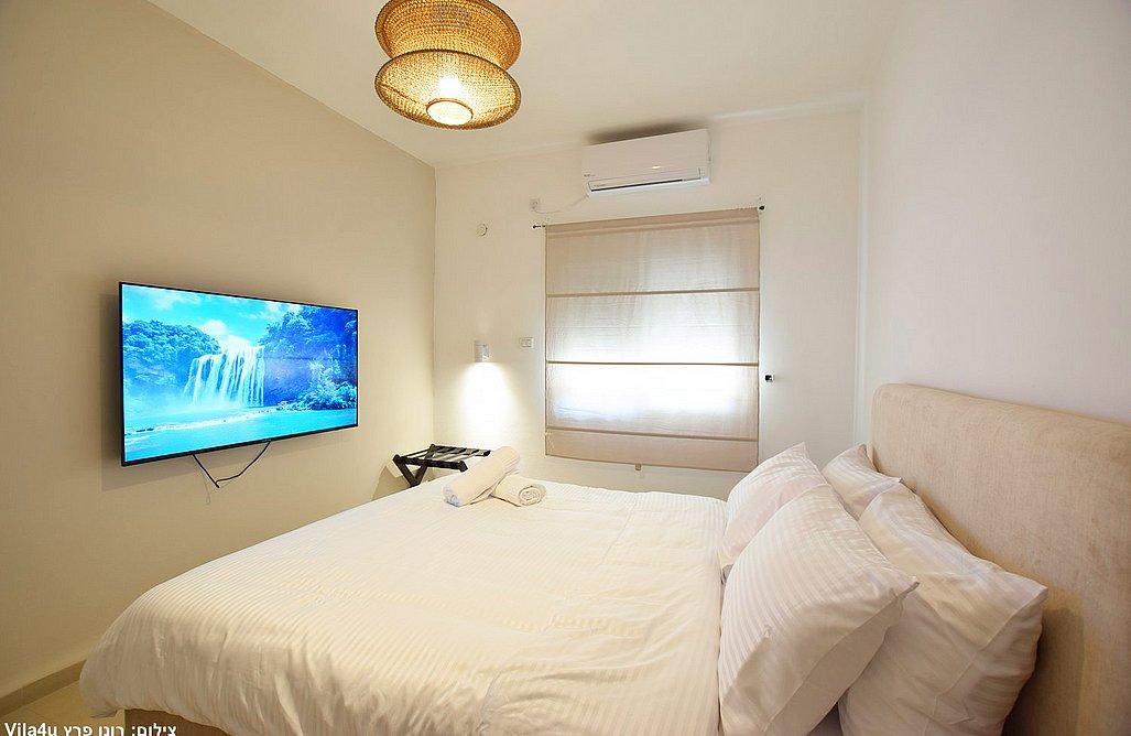כל חדר כולל מיטה זוגית (בחדרי הילדים – מיטות ילדים), מיזוג אוויר, מסך צפייה, ארונות ושידות.