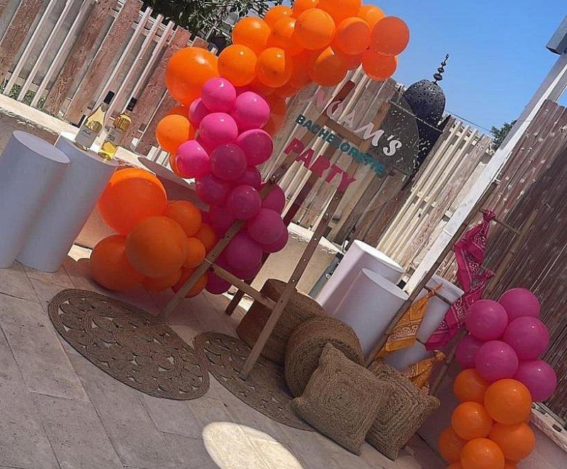 ניתן להזמין דרך בעל המקום מבחר חבילות למסיבת רווקות הכוללות אותיות BRIDE, שולחנות שוק ועוד.