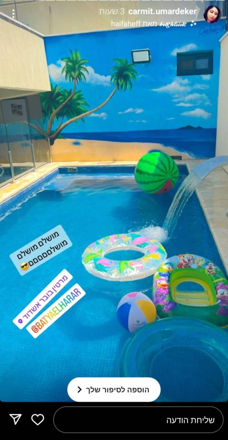 המתחם מתאים לכל סוגי האירועים עד 35 איש והוא כולל בריכת שחייה, עמדת מנגל, רמקול למוזיקה, מגוון פינות ישיבה ואווירה שאין באף מקום אחר!