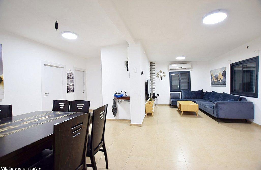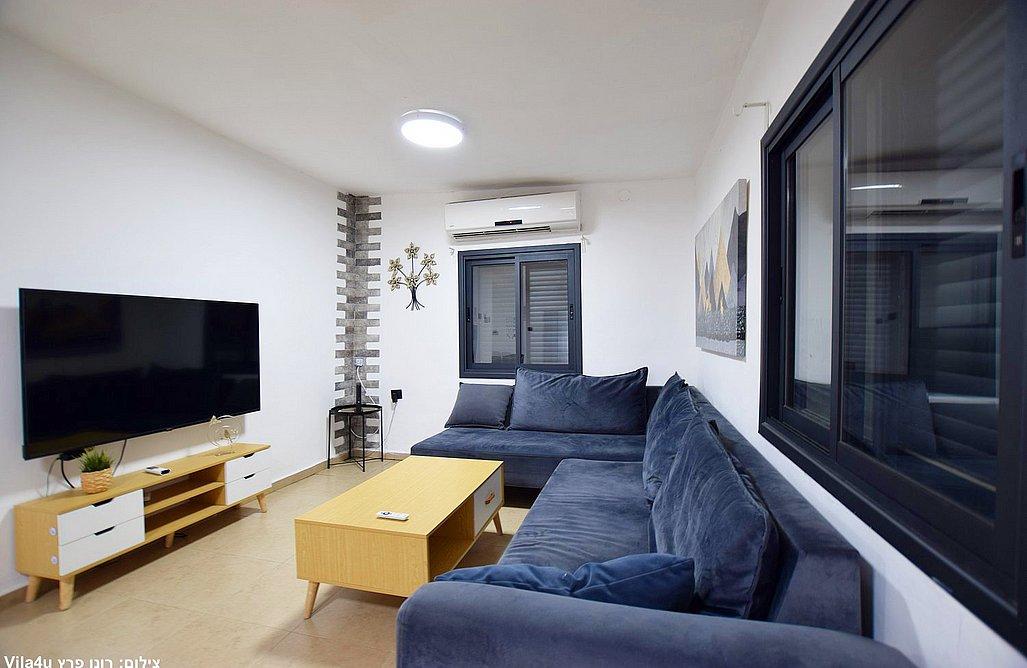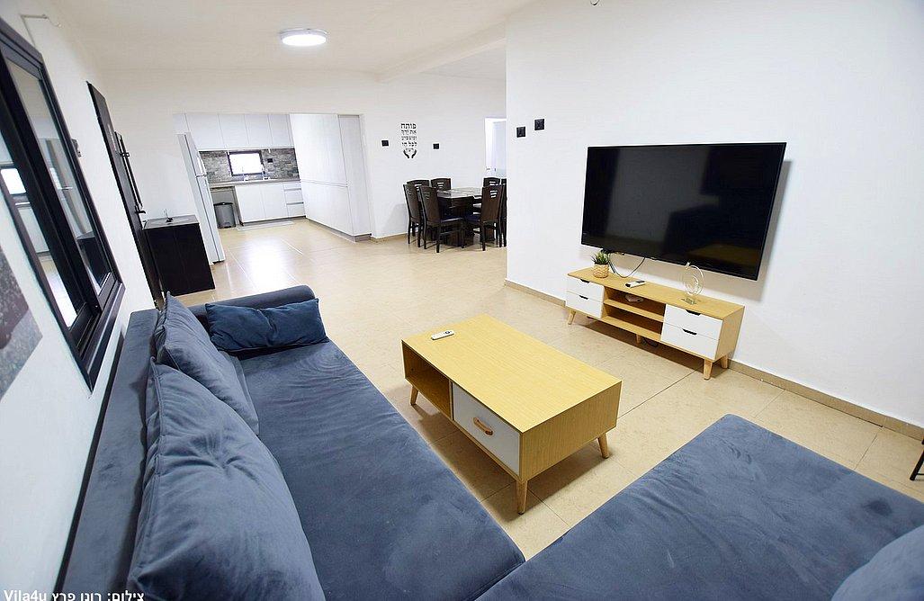 סלון מרווח עם מערכת ישיבה וטלוויזיה חכמה