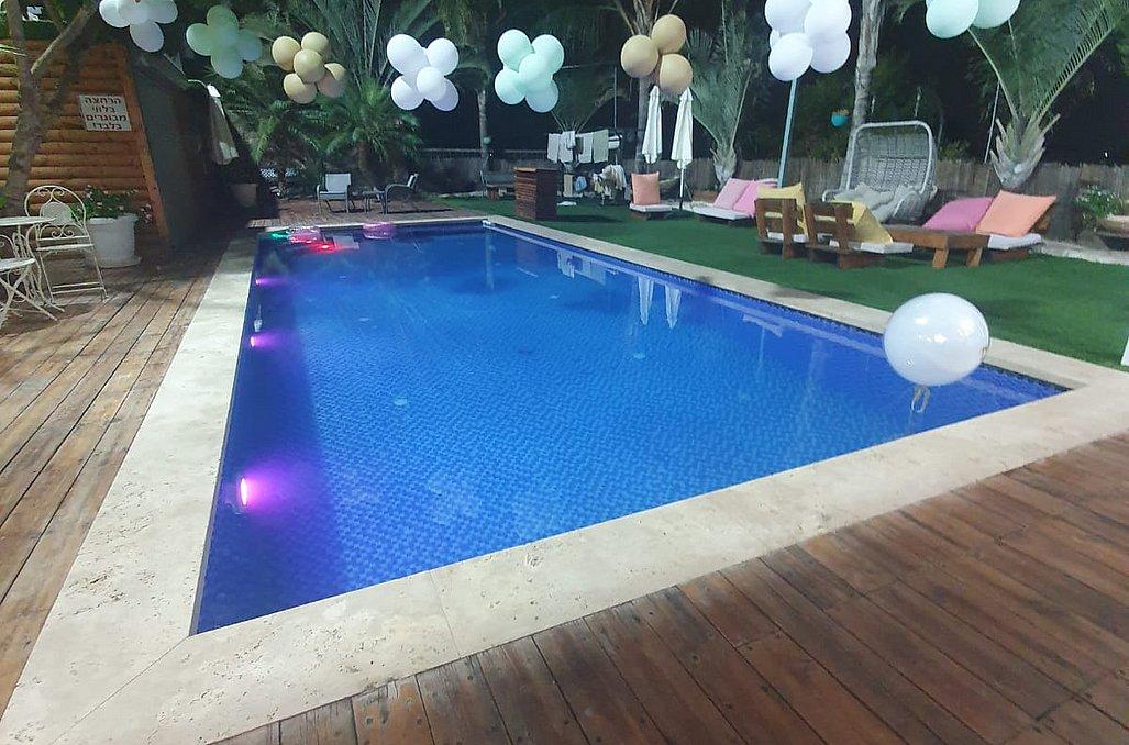 תאורת לד פנימית מרהיבה בתוך הבריכה אשר בלילה מוצגת בשלמות