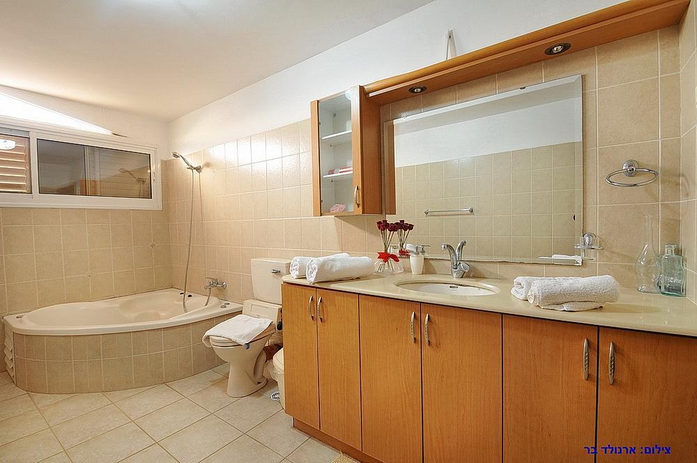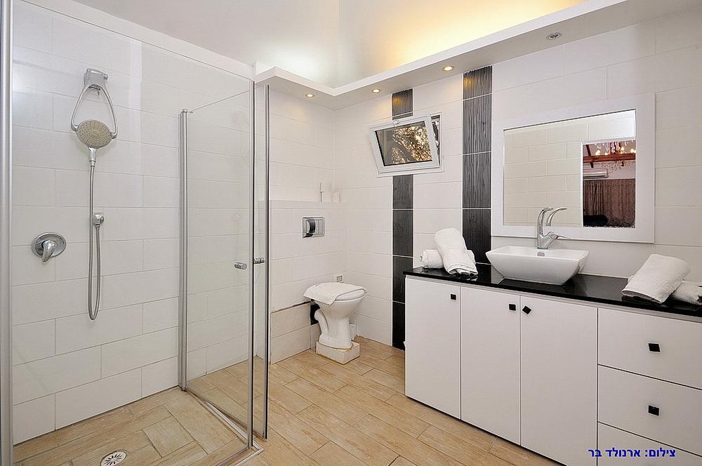 חדר רחצה עם מקלחת ושירותים נוסף משותף.