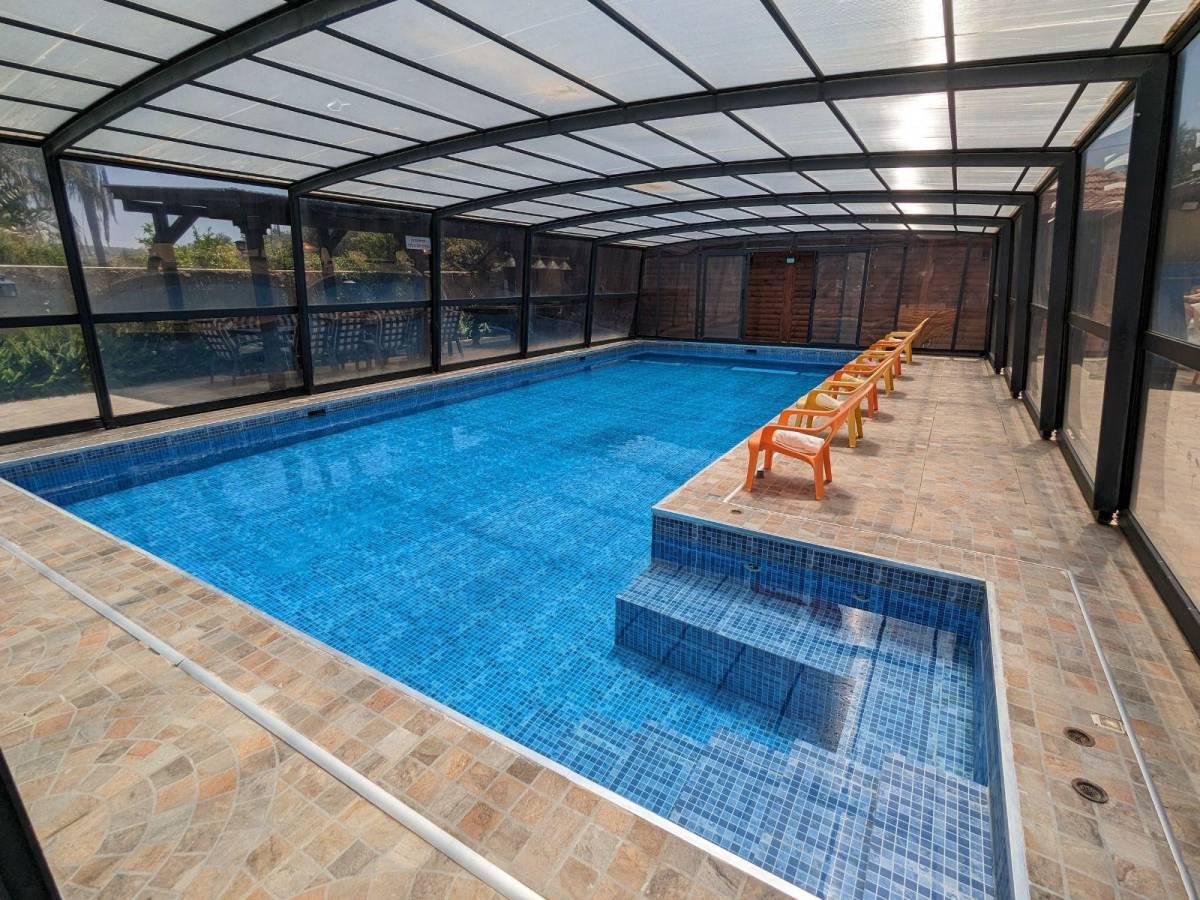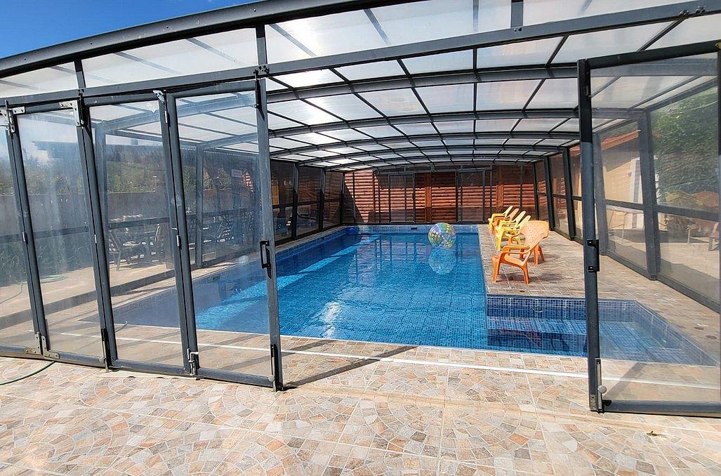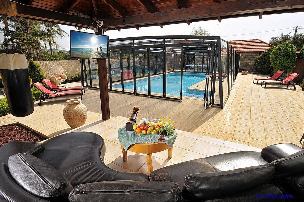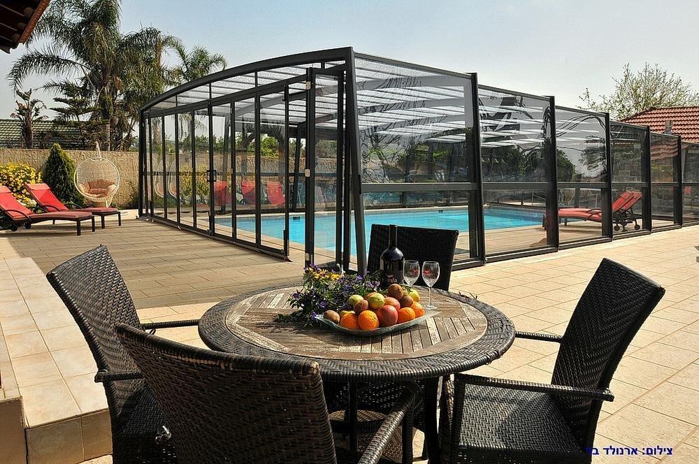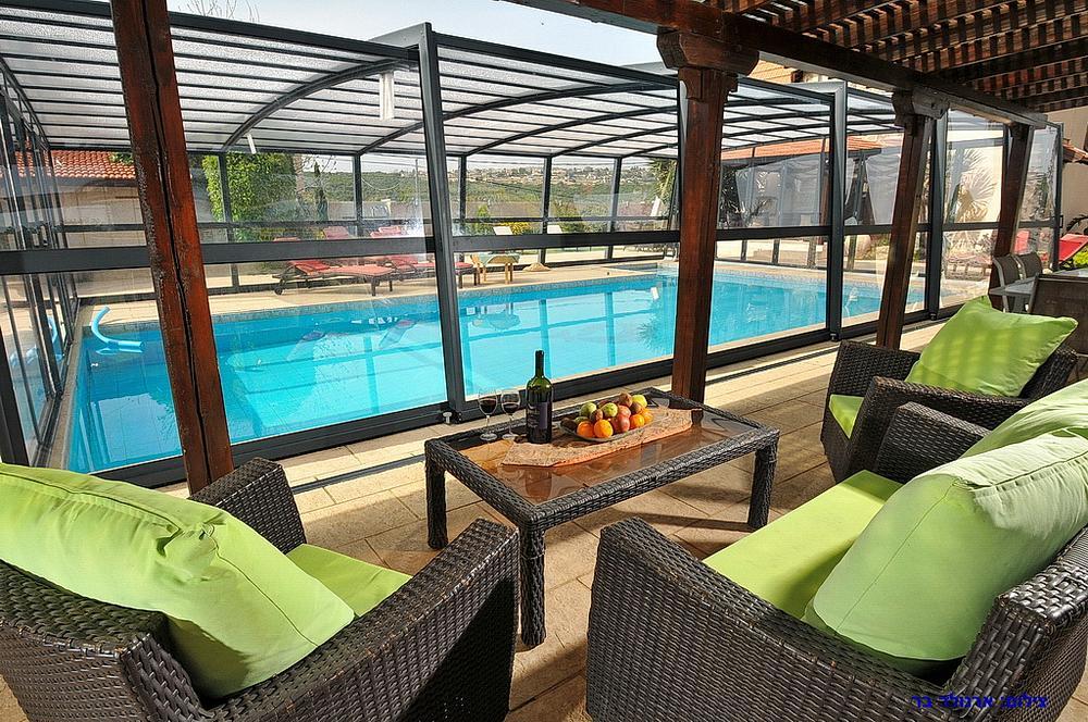 בריכת שחייה מחוממת ומקורה בגודל 12X5