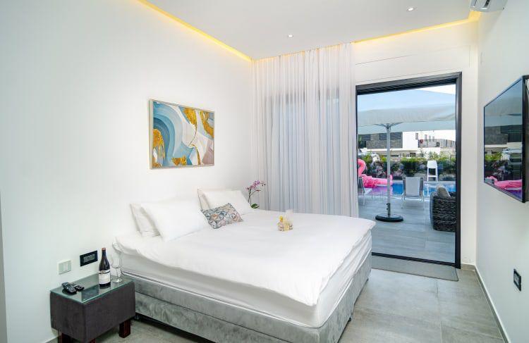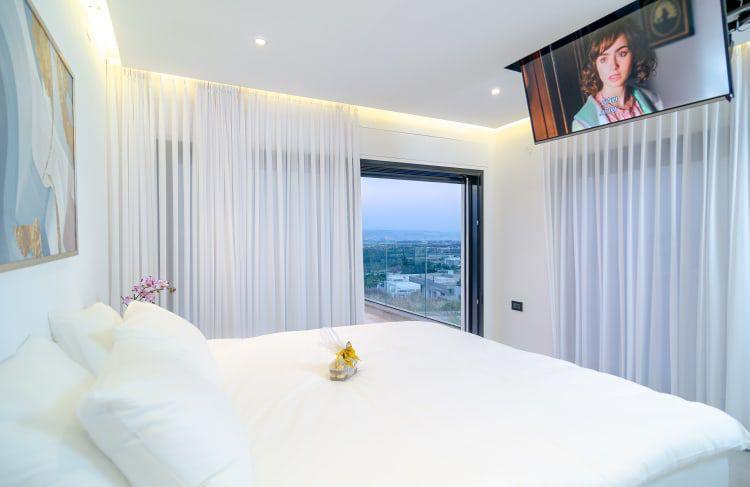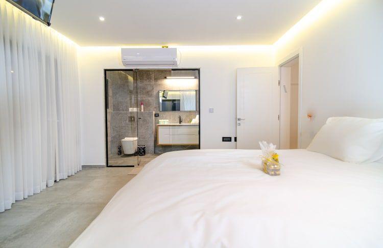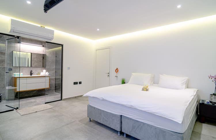 מיטה זוגית מוצעת, מיזוג אוויר, מסך צפיה, שידה או ארונית