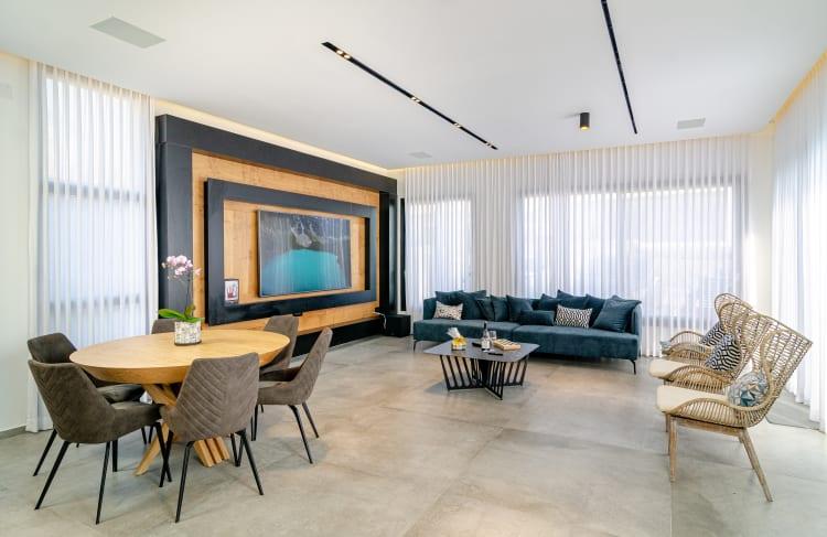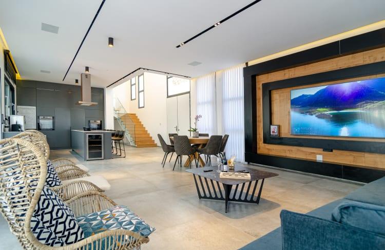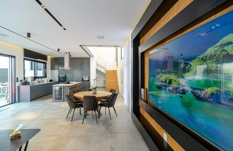 מערכת ישיבה סלונית + מסך צפייה בגודל 90 אינץ' עם מערכת קולנוע ומבחר ערוצים