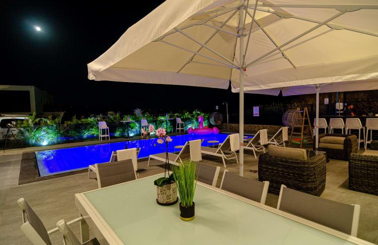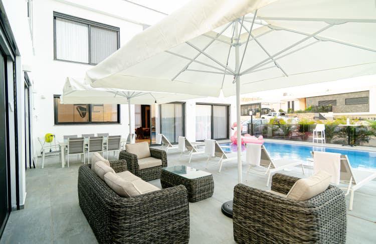 ריהוט גן הכולל פינות שיזוף, פינות ישיבה ושולחן גינה