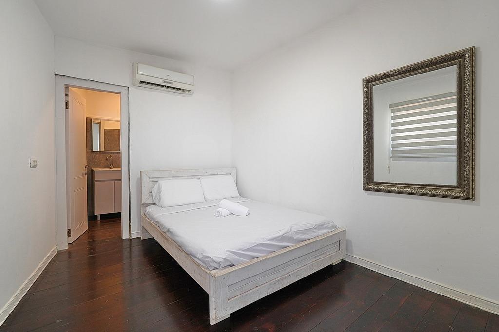 חדר שינה 1 ( סוויטה ) - מיטה זוגית מוצעת, מיזוג אוויר, שידות וארונות לאחסון, מסך טלוויזיה, חדר רחצה פרטי.