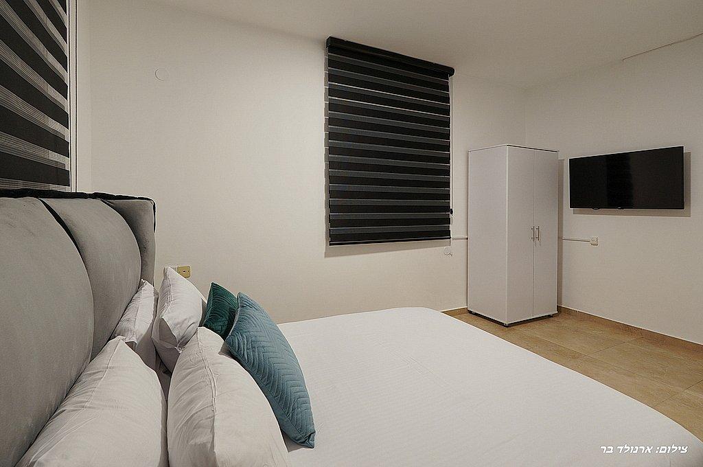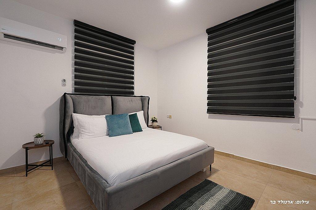 מיטה זוגית מוצעת, מיזוג אוויר ושידות.
