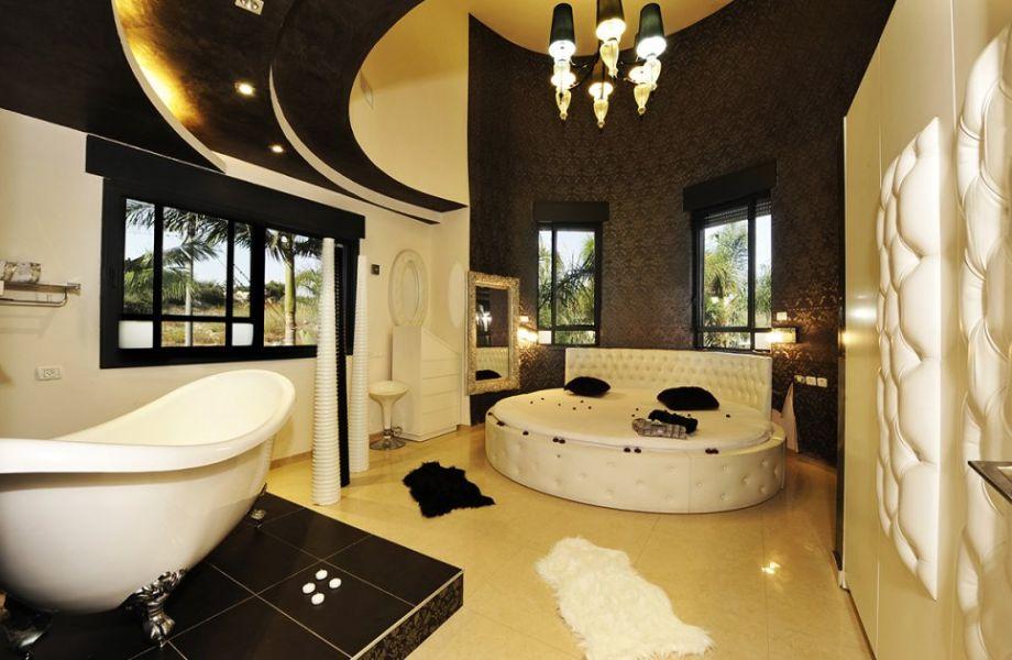 קומה העליונה: ישנם 4 חדרי שינה מתוכם סוויטה נשיאותית ובה מיטה עגולה, ארון בגדים (כל חדרי השינה הזוגיים מכילים מיטה זוגית, שידות אחסון ומיזוג )
