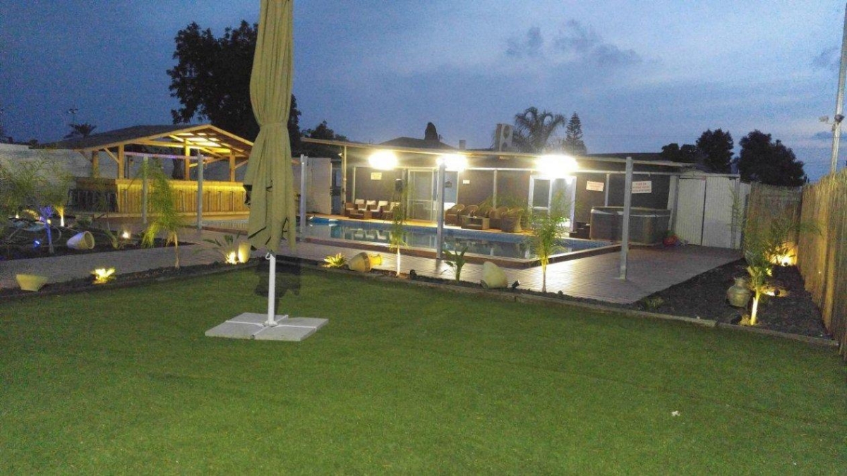 מתחם חיצוני: חצר הוילה היא למעשה גן אירועים ענק ומפואר הכולל מדשאות רחבות ידיים, תאורה צבעונית, ריהוט גן יוקרתי הכולל פינות ישיבה, בריכת שחייה גדולה, בר ענק עם 30 מקומות ישיבה, ברביקיו ומיטות שיזוף. אירועים בגן עד 150 איש