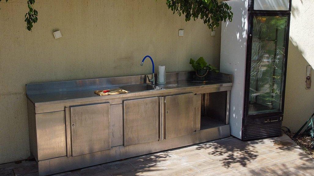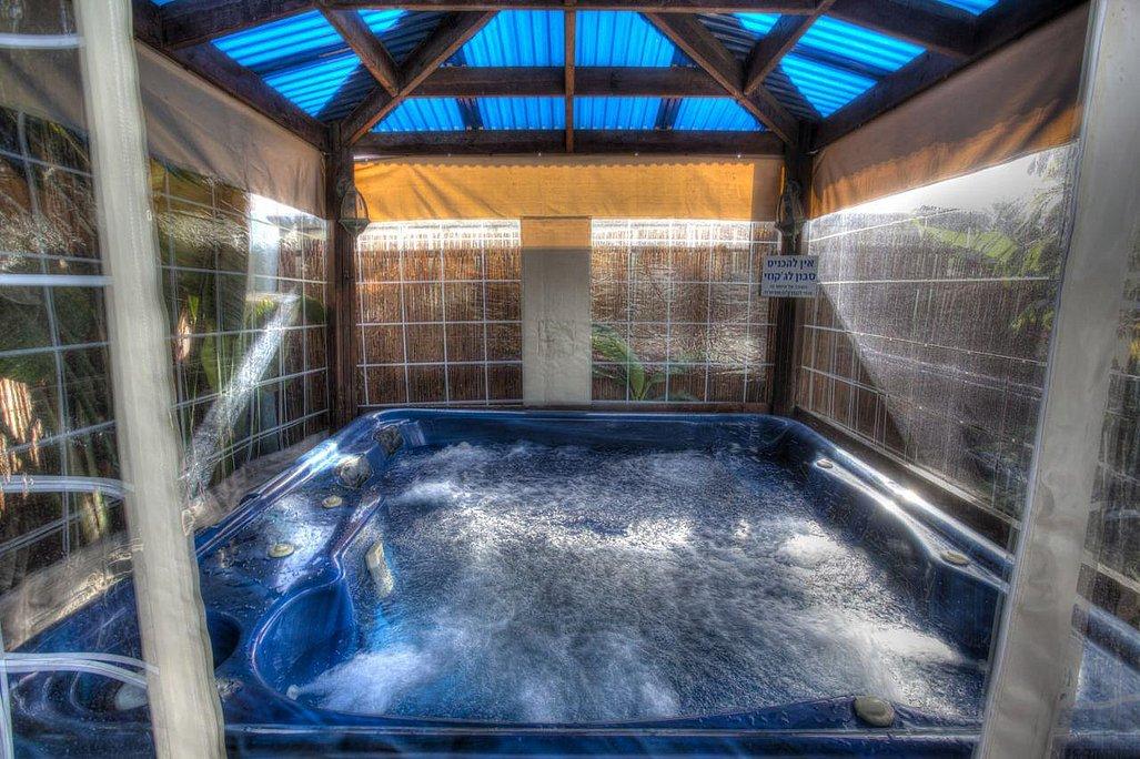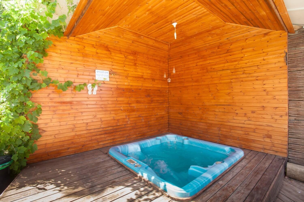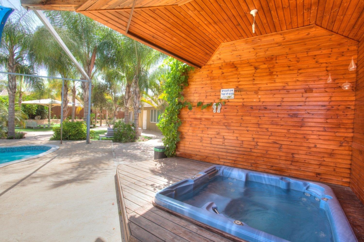 באזור החיצוני של המתחם ניתן למצוא: מטבח מאובזר, בר, פינת מנגל, מקרר, ג'קוזי ספא שמותאם ל10 אנשים ובריכת שחיה מחוממת ומקורה.