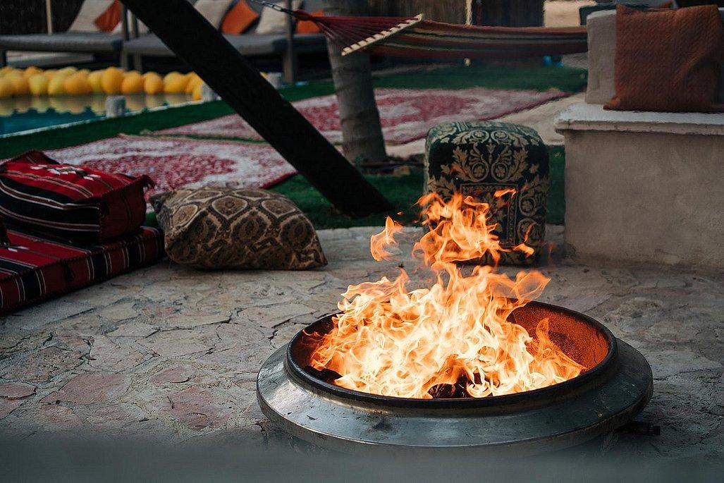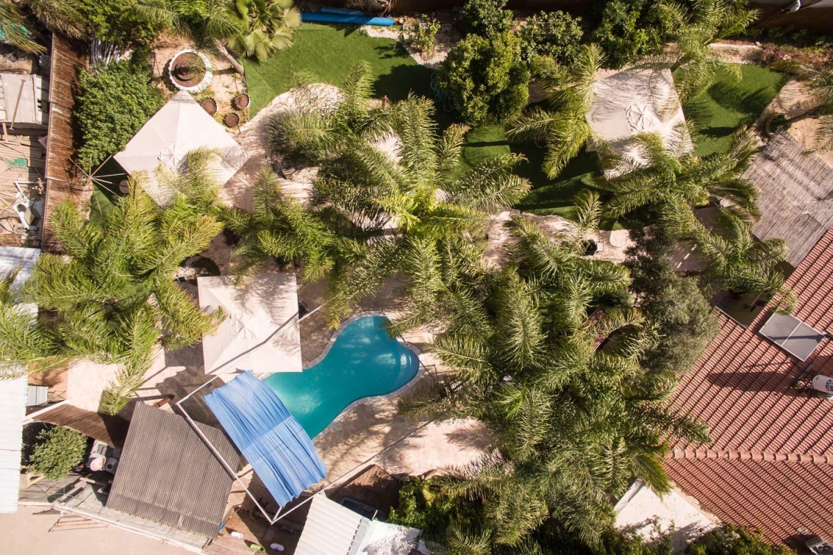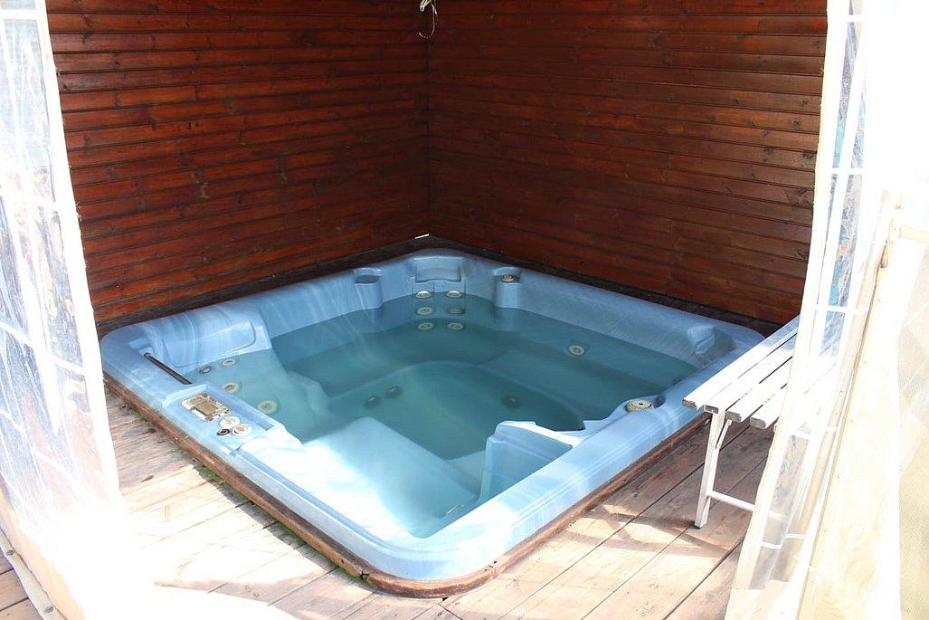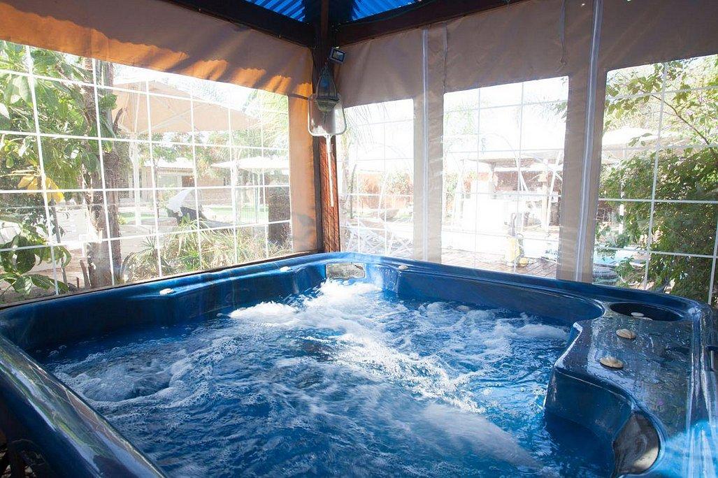 באזור החיצוני של המתחם ניתן למצוא: מטבח מאובזר, בר, פינת מנגל, מקרר, ג'קוזי ספא שמותאם ל10 אנשים ובריכת שחיה מחוממת ומקורה.