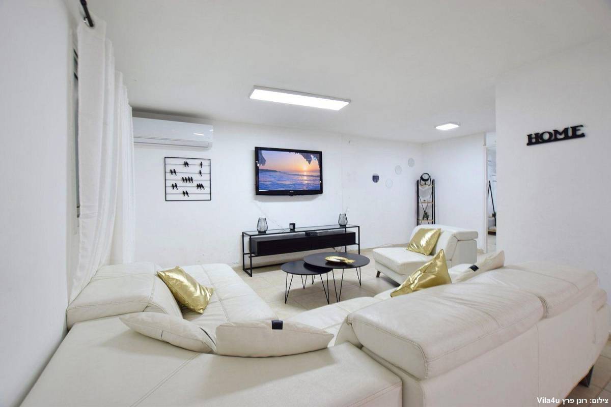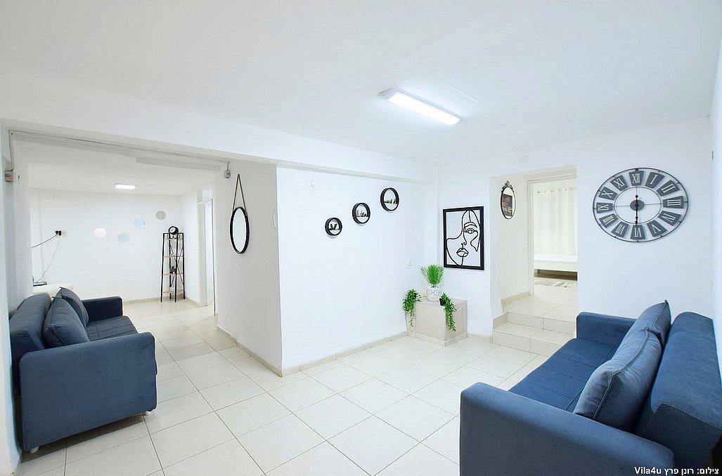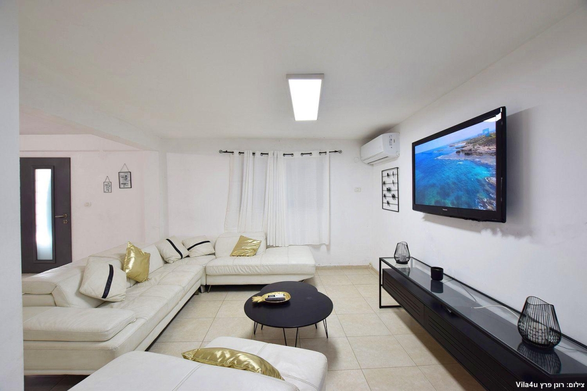 סלון ענק ויוקרתי עם טלוויזיה בגודל 55 אינץ' וחיבור ל-HOT