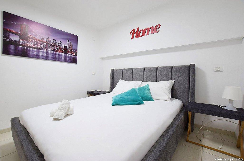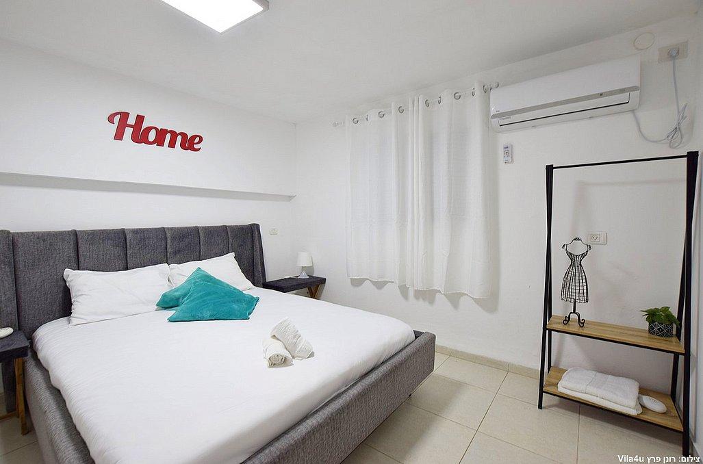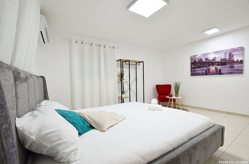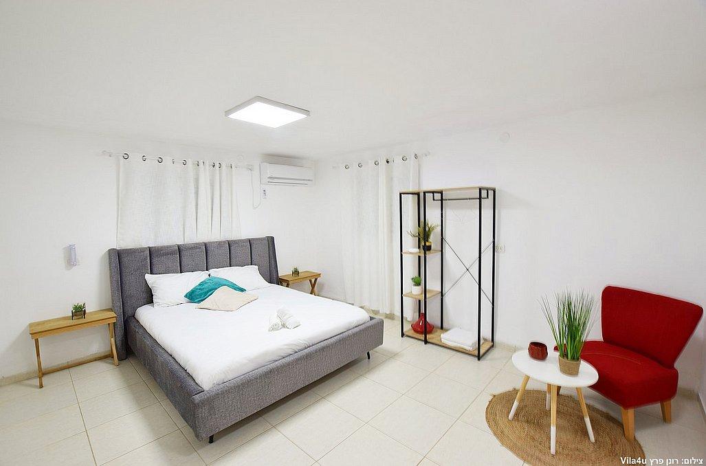 מיטה זוגית מוצעת, מיזוג אוויר, שידות, פינת ישיבה