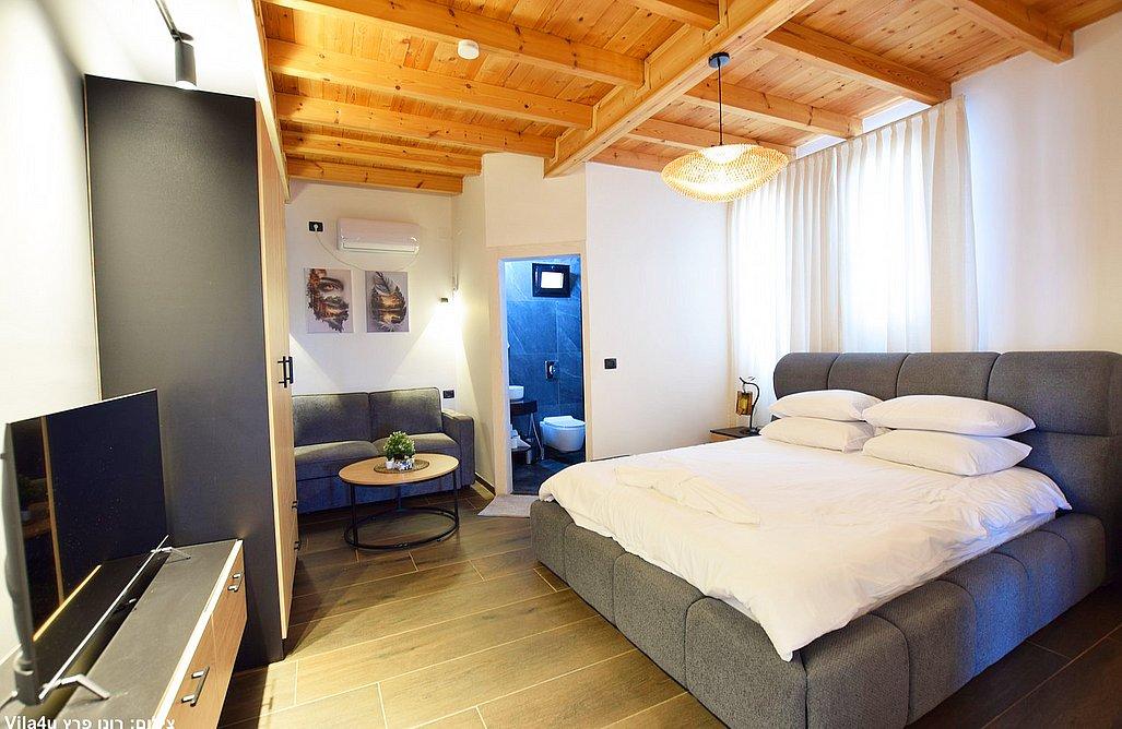 מיטה זוגית, מזגן, טלוויזיה, ספה, חדר רחצה פרטי