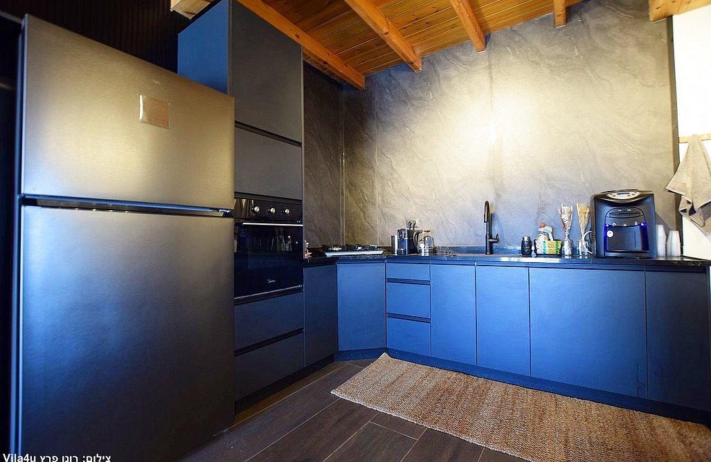 מטבח מאובזר: מקרר, תנור, מיקרוגל, קולר מים, מכונת אספרסו, כיריים גז, קומקום חשמלי
