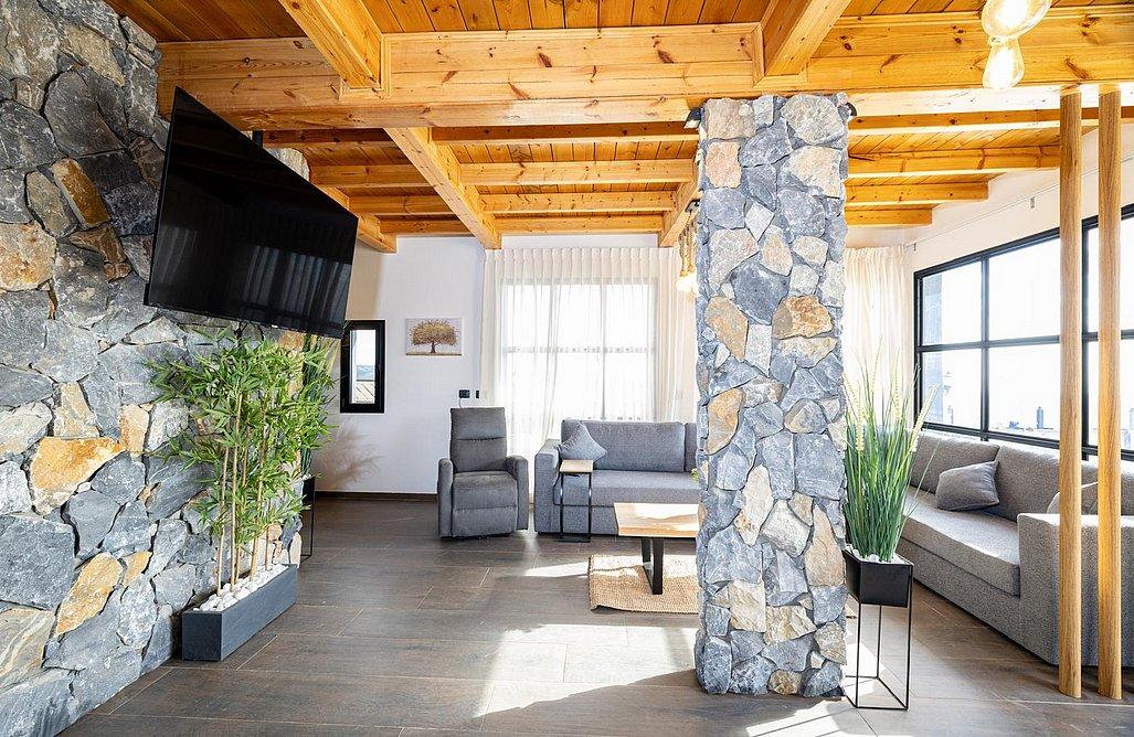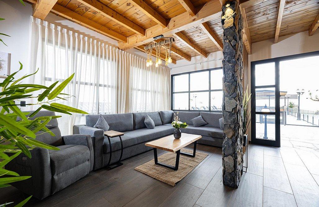 סלון מפואר עם טלוויזיה חכמה בגודל 65 אינץ'