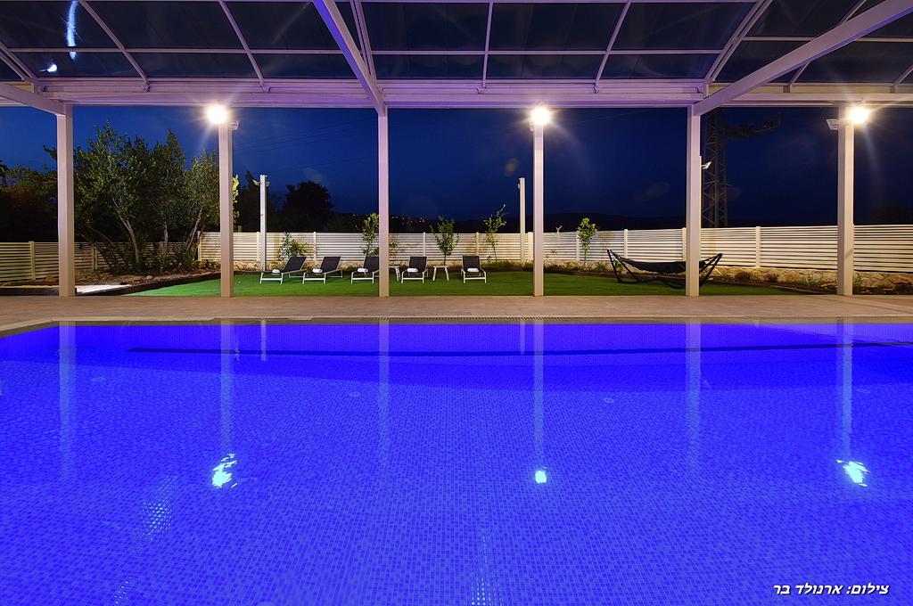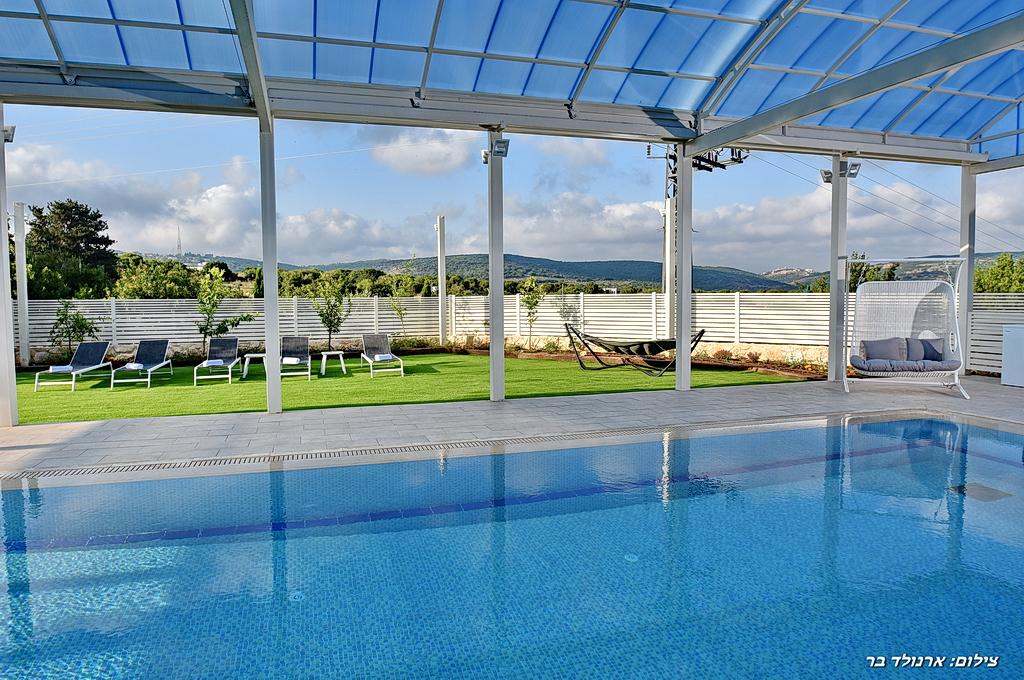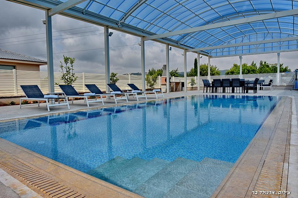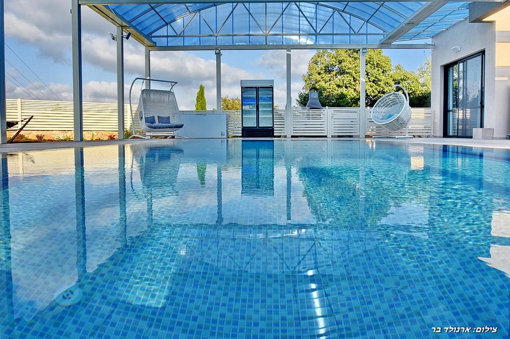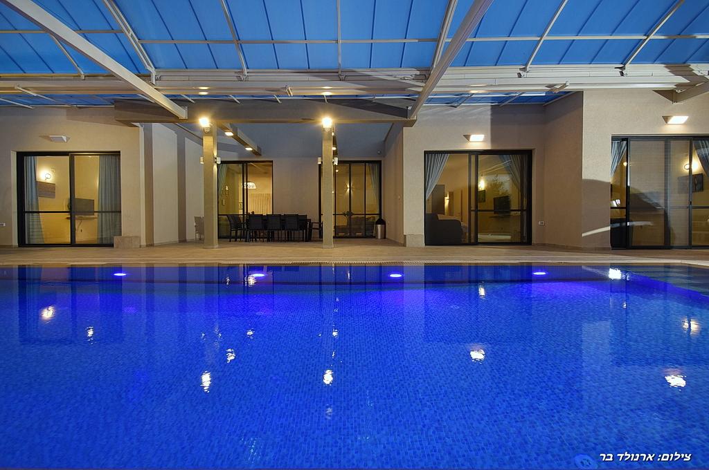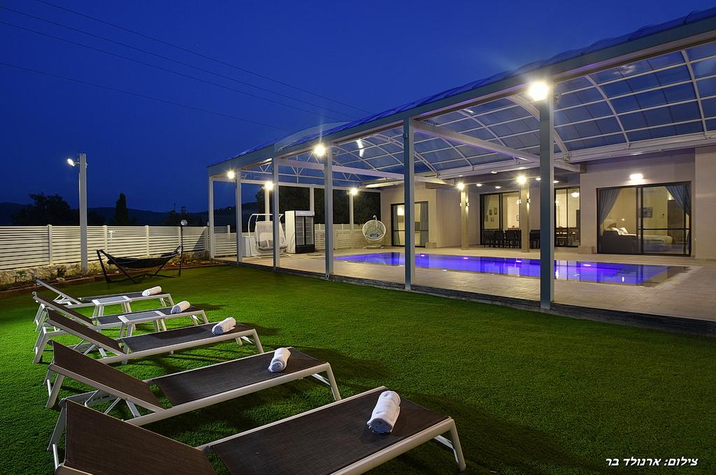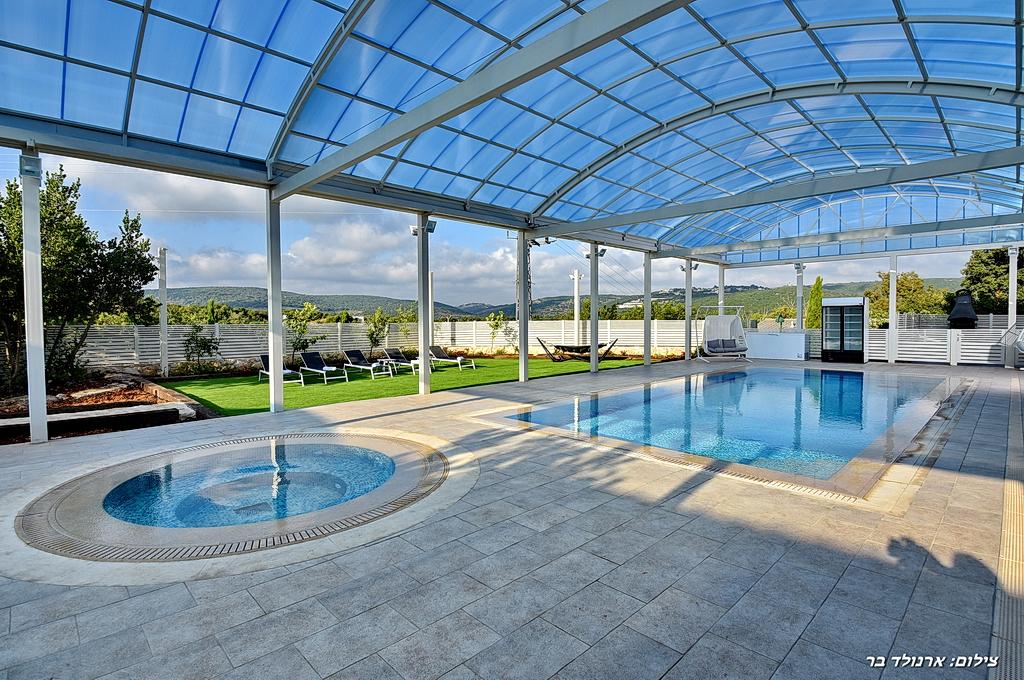מתחם חיצוני - בריכה גדולה במיוחד עם מערכת זרמים וג'קוזי בתוך הבריכה. הבריכה מחוממת בימי החורף, פינות שיזוף, ערסלים, פינת ברביקיו, ריהוט גן יוקרתי, מקרר, מקפיא וג'קוזי גדול ומפנק.