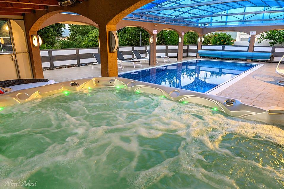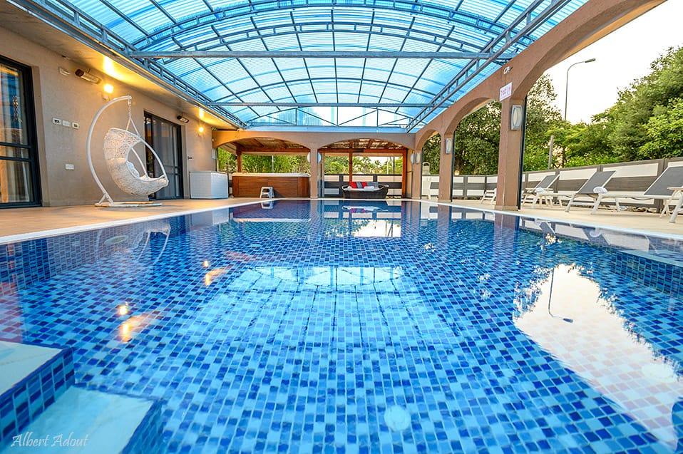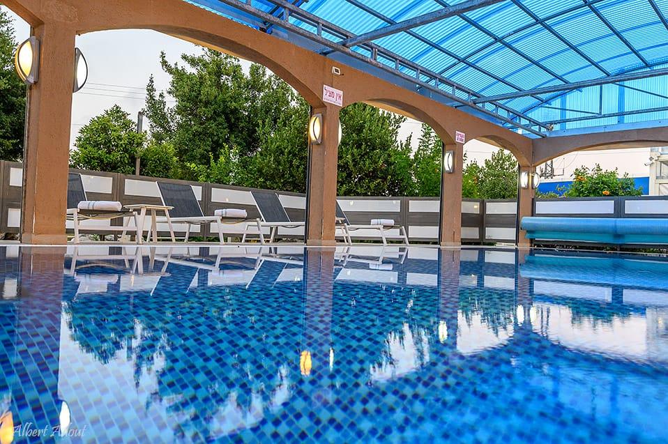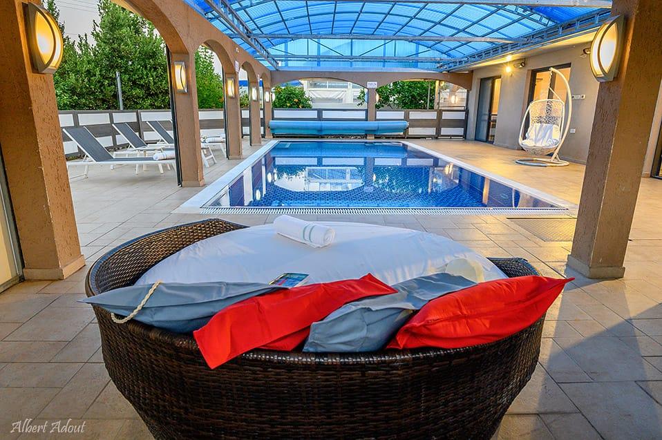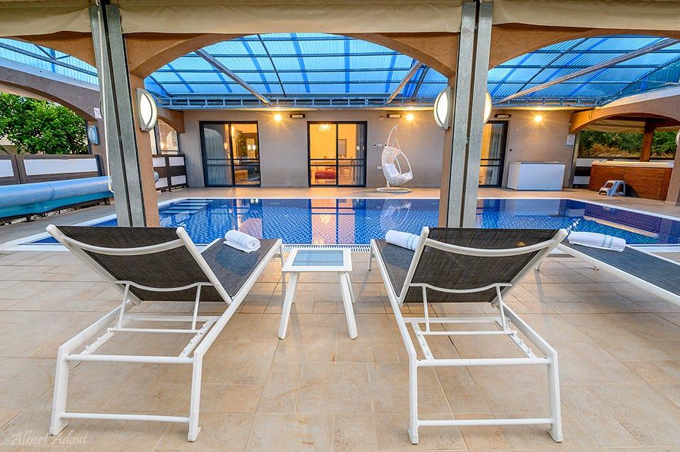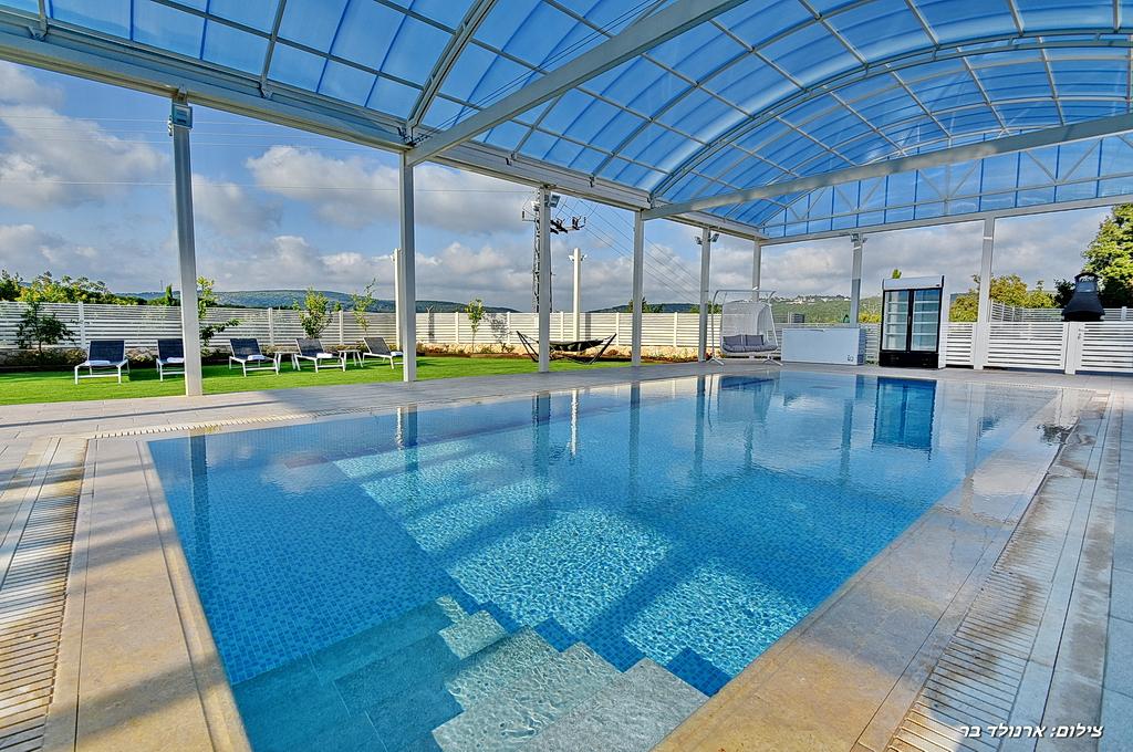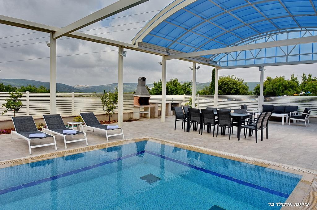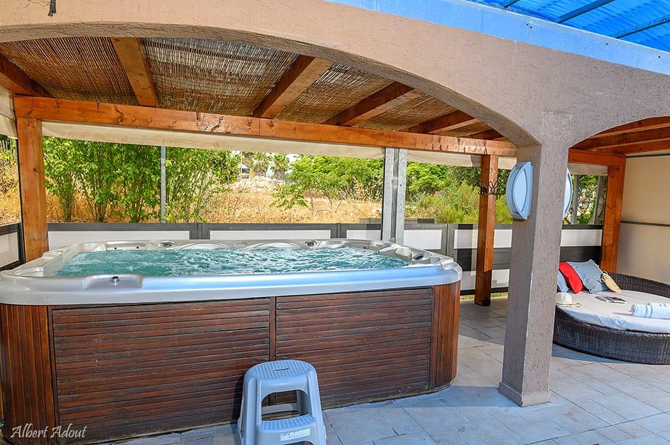 מתחם חיצוני - בריכה גדולה במיוחד עם מערכת זרמים וג'קוזי בתוך הבריכה. הבריכה מחוממת בימי החורף, פינות שיזוף, ערסלים, פינת ברביקיו, ריהוט גן יוקרתי, מקרר, מקפיא וג'קוזי גדול ומפנק.