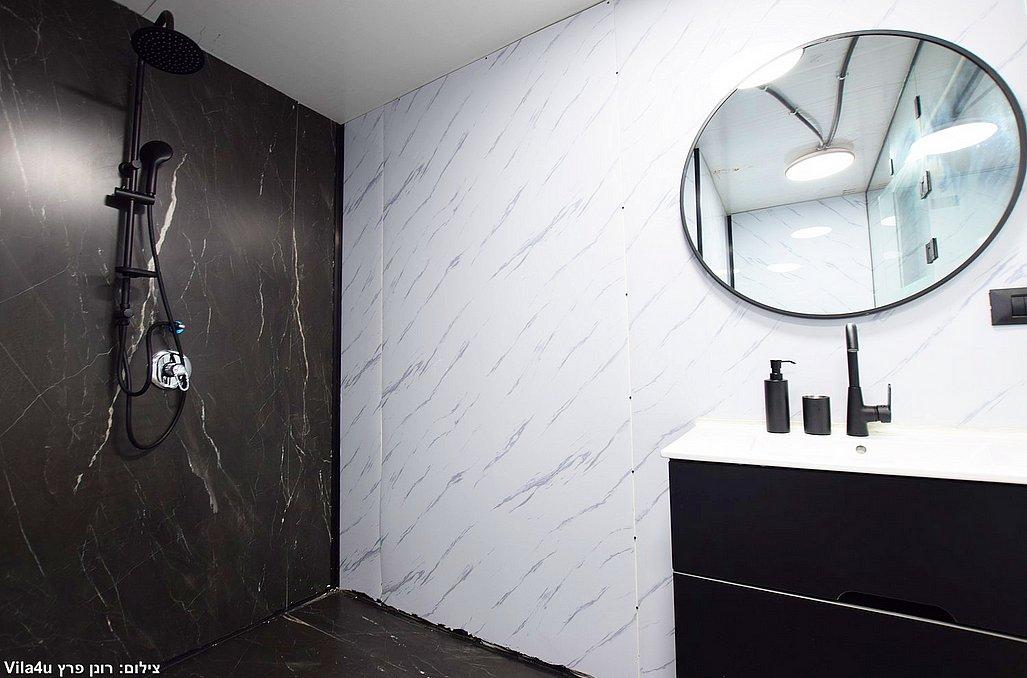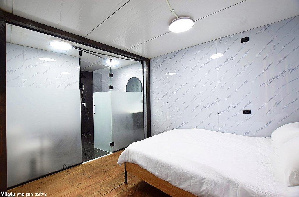 חדר שינה הכולל: מיטה זוגית, מזגן, טלוויזיה, חדר רחצה פרטי