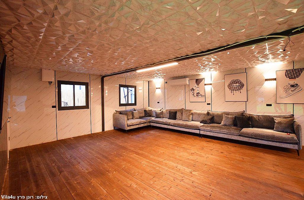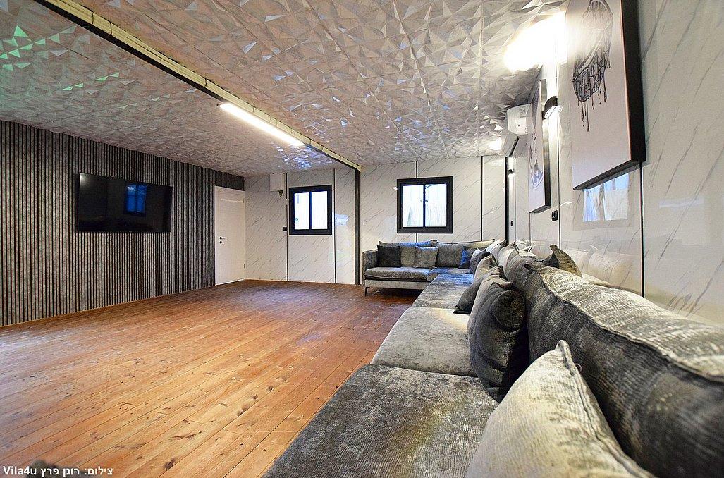 סלון גדול ורחב עם מערכת ישיבה, טלוויזיה, מערכות הגברה ותאורה