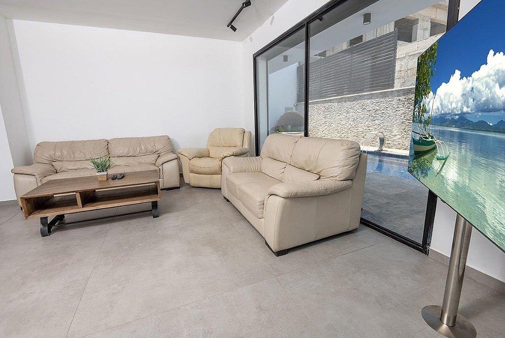 סלון מרווח עם 2 ספות וטלוויזיה (חיבור YES)