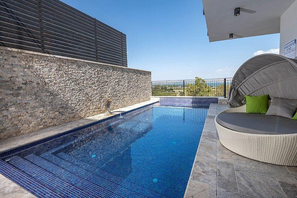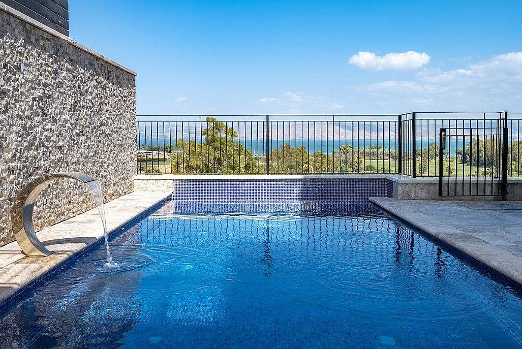 בריכת שחייה מחוממת ומגודרת עם כדורסל מים