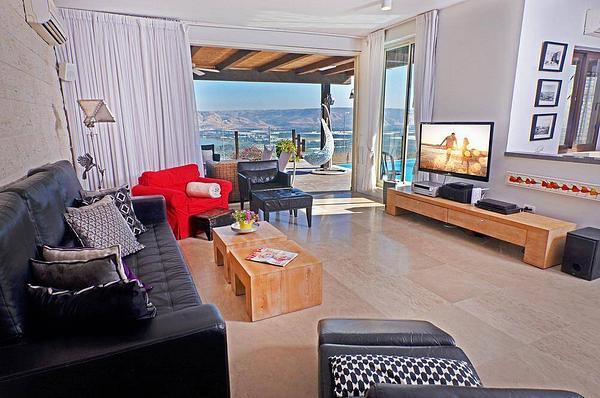 וילה מצפה הוד מזמינה אתכם לחוויית נופש אקסקלוסיבית מול נופים פנורמיים של הכנרת והרי הגולן. הוילה ממוקמת בנקודת תצפית אסטרטגית, מרחק דקות נסיעה בודדות מחופי הכנרת ומגוון אטרקציות שטח. האחוזה המפוארת כוללת 8 חדרי שינה מעוצבים (ביניהם חדר ילדים 5 סוויטות וסוויטת מערה ייחודית ), מטבח מאובזר בסטנדרט גבוה וסלון רחב ידיים המצויד במערכת קולנוע וקונסולת פלייסטיישן. בחצר המעוצבת תיהנו מבריכת אינפיניטי מרשימה (מחוממת בחורף), ג'קוזי ספא מקורה, מדשאות ירוקות, שולחנות משחק מקצועיים (סנוקר ופינג פונג) ועמדת גריל משוכללת עם טאבון ותנור. האירוח אידיאלי למשפחות ברוכות ילדים, קבוצות ולציבור הדתי, עם אפשרות לינה לעד 18 אורחים במיטות (או 24 כולל מזרנים). המתחם מתאים גם לסדנאות, ימי גיבוש, הצעות נישואין ואירועי בוטיק יוקרתיים עד 80 מוזמנים (עם מוזיקת רקע). הזמינו עכשיו חופשה בלתי נשכחת מול הנוף היפה בארץ!
