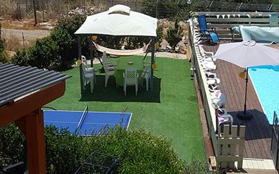 חצר גדולה כ- 120 מטר עם פינות ישיבה ושולחן פינג פונג