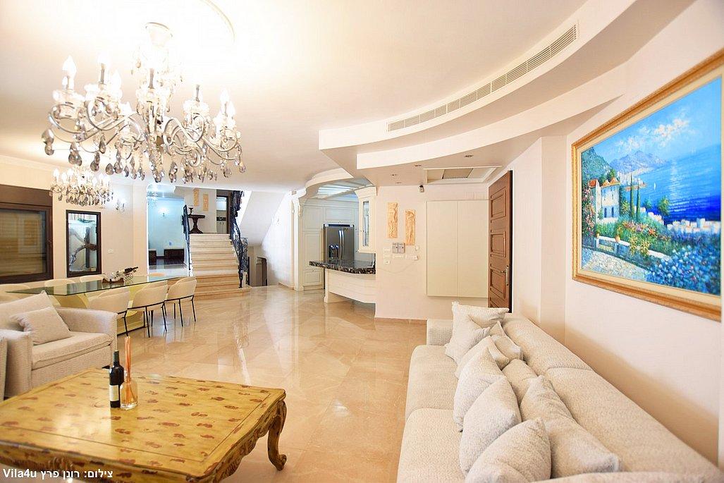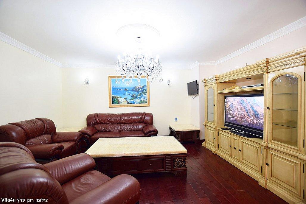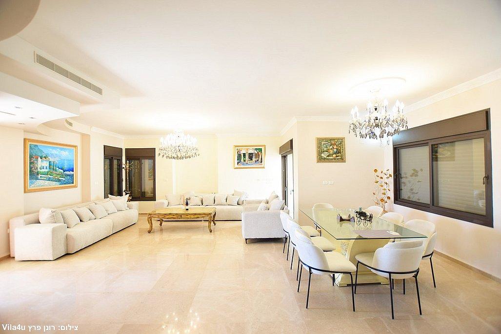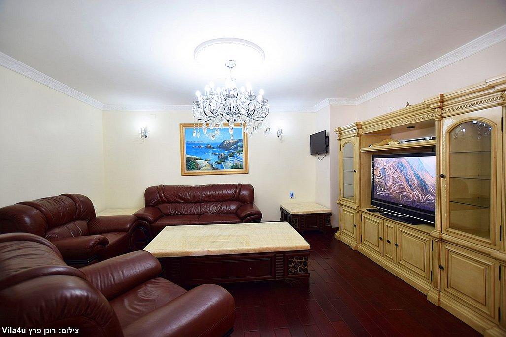 • סלון גדול עם שתי מערכות ישיבה ומסכי טלוויזיה