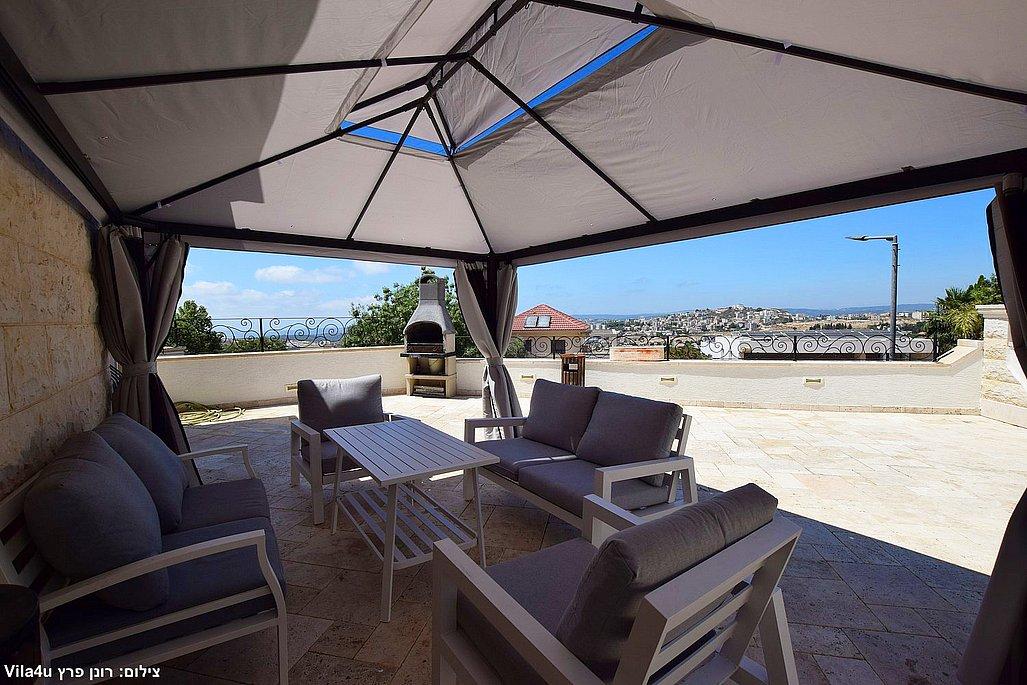 • גזיבו מרווח עם ריהוט גן איכותי